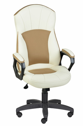 Кресло на колесах Канц ультра кожзам бежевый, крестовина пластик, подлокотники с мягкими накладками, механизм качания
