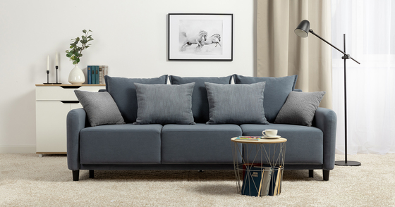 Диван-кровать прямой Тэдди 1504 композиция 1, букле Pique 009 синий, модульная система