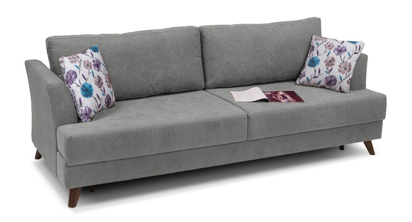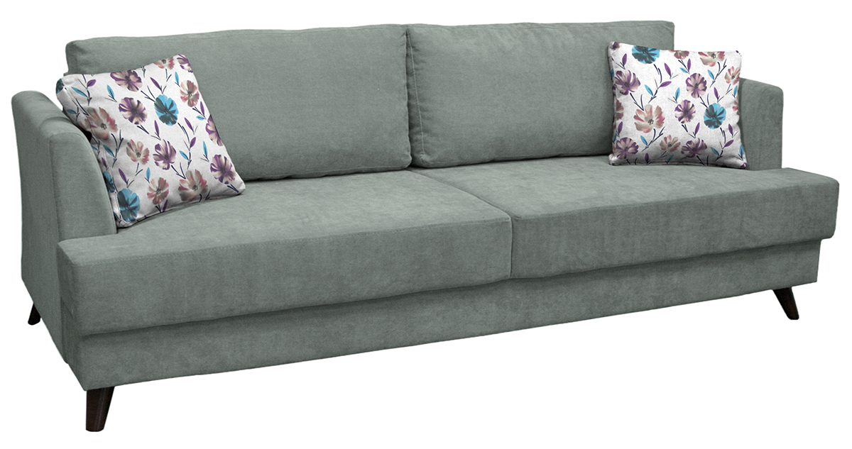 Лаконичный и элегантный диван легко впишется в любой современный интерьер. Из нескольких вариантов обивки вы легко сможете подобрать цветовое решение, подходящее именно вам. Высокие подлокотники и декоративные подушки обеспечивают комфортную посадку.