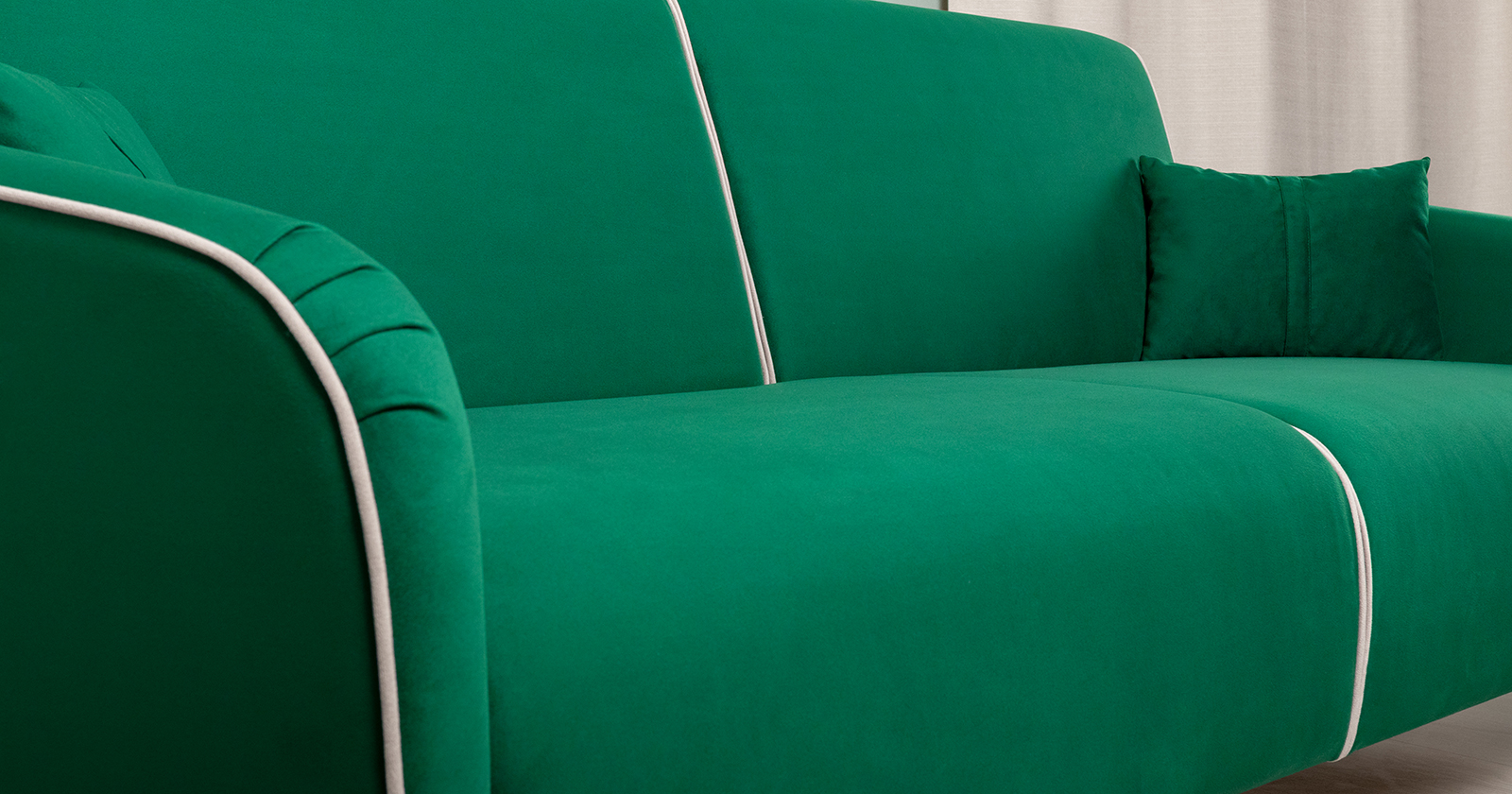 Диван-кровать прямой Ноэль ТД 446 велюр темно-зеленый малахитовый, светлый кварцевый серый