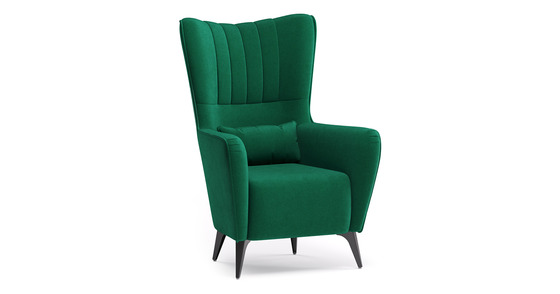 Спинка и сиденье разделяются пополам двойным кантом по центру и одинарным по краям сидения, для придания одной единой формы. Подлокотники с изгибом на лицевой стороне и мягкими закругленным углом со складками, с выраженным контрастным ровным кантом по внешнему контуру изделия и изогнутой линией канта.