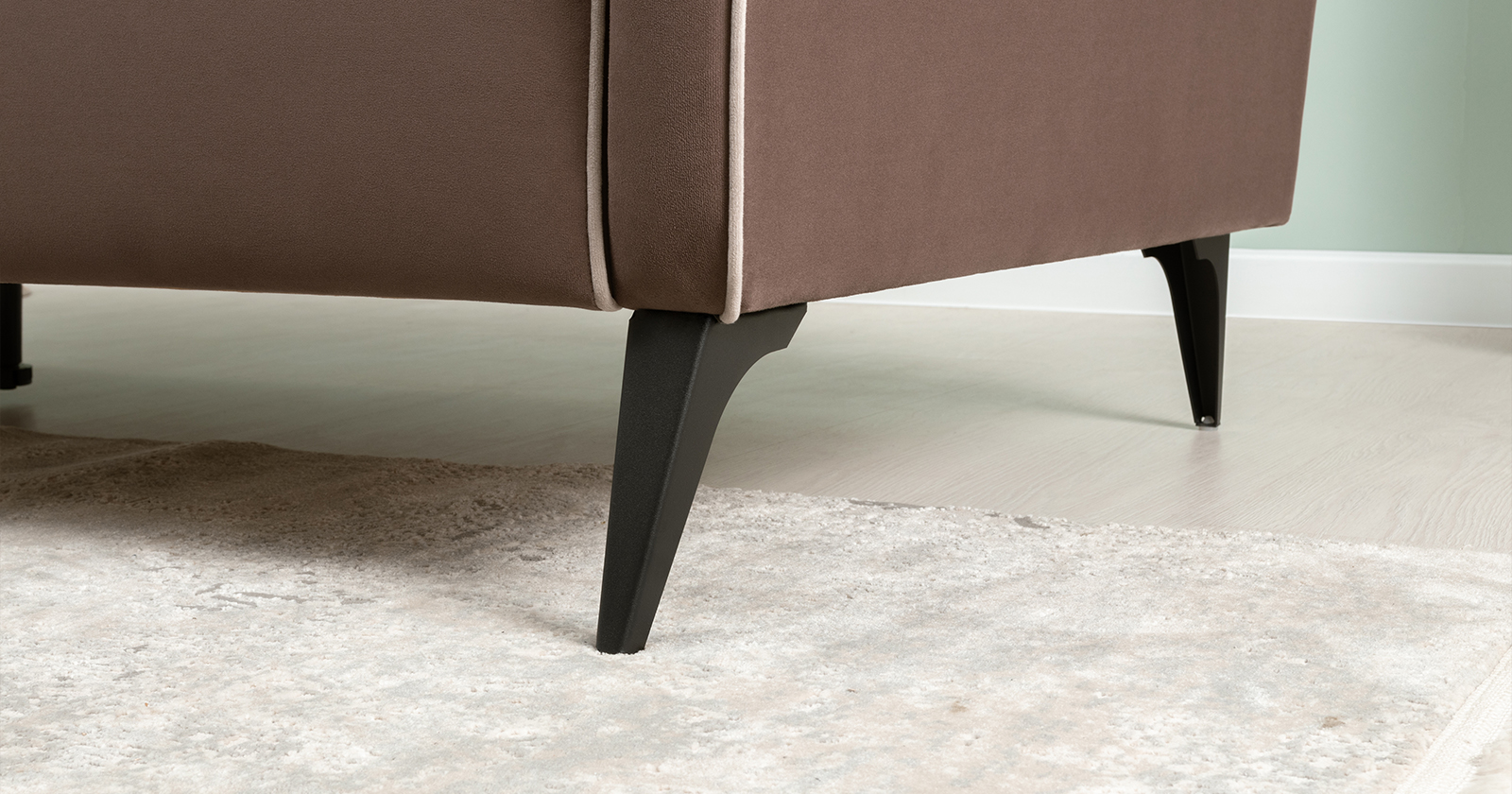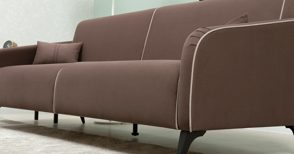 Спинка и сиденье разделяются пополам двойным кантом по центру и одинарным по краям сидения, для придания одной единой формы. Подлокотники с изгибом на лицевой стороне и мягкими закругленным углом со складками, с выраженным контрастным ровным кантом по внешнему контуру изделия и изогнутой линией канта.