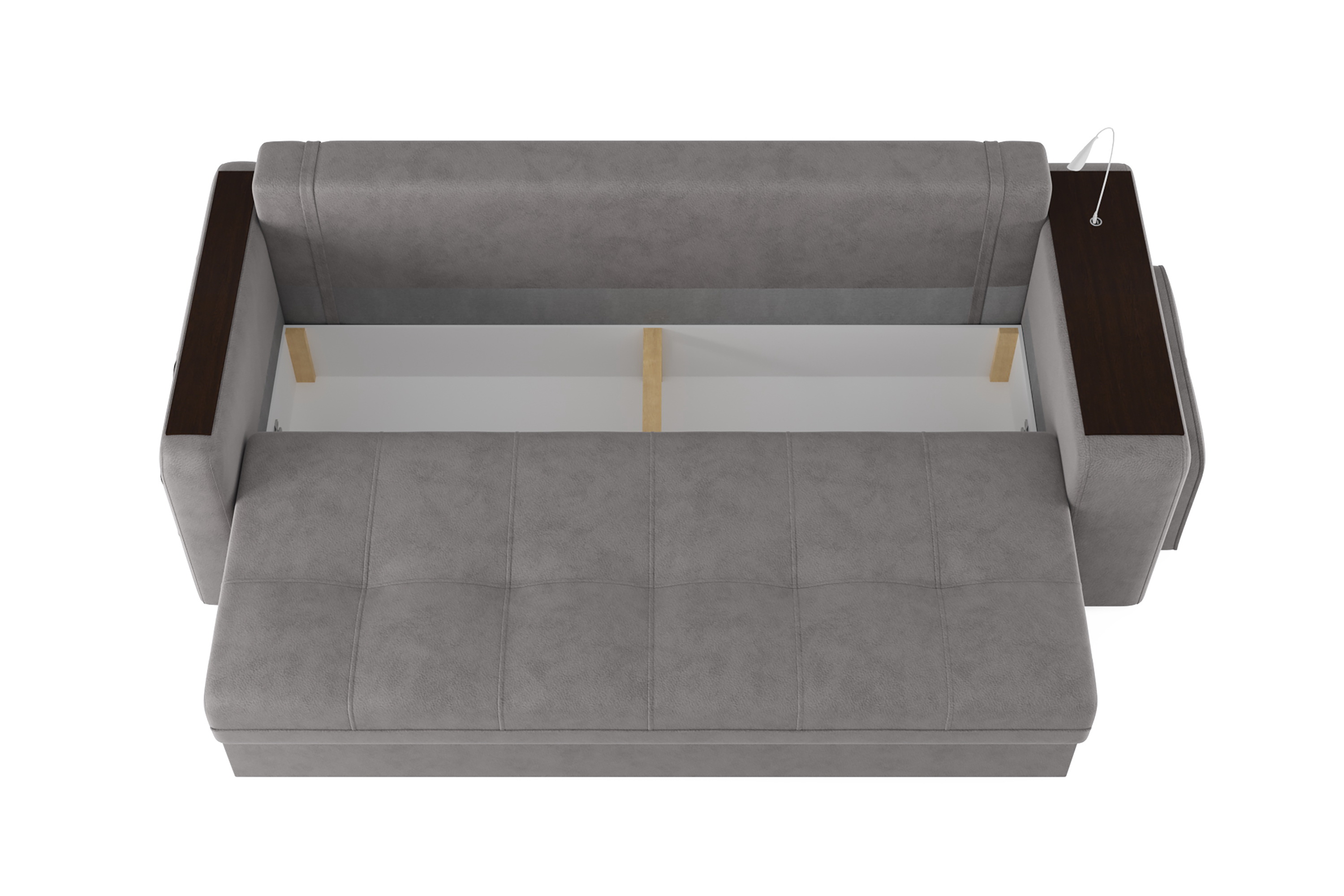 Диван «SMART 4» — это не просто мягкая мебель, а один из ключевых элементов интерьера с обширным функционалом, где эстетика тесно соседствует с комфортом и эргономичностью.  Одна боковина оснащена карманом для хранения мелочей и гаджетов, другая боковина совмещает одновременно: рабочую поверхность, за счет широкой накладки, двойной  usb - порт  и портативную лампу точечного света, которая входит в комплект. Добавить контрастных деталей в интерьер поможет пуф, интегрированный в подлокотник. Этот вариант для современных людей, которые ценят комфорт и удобство отдыха. Мягкое сиденье с легкостью трансформируется в просторное спальное место, на котором смогут утроиться ваши гости. Стильный и уютный, он станет отличным решением, если вы ищите не только красоту, но и комфорт.