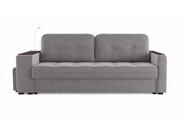 Диван «SMART 4» — это не просто мягкая мебель, а один из ключевых элементов интерьера с обширным функционалом, где эстетика тесно соседствует с комфортом и эргономичностью.  Одна боковина оснащена карманом для хранения мелочей и гаджетов, другая боковина совмещает одновременно: рабочую поверхность, за счет широкой накладки, двойной  usb - порт  и портативную лампу точечного света, которая входит в комплект. Добавить контрастных деталей в интерьер поможет пуф, интегрированный в подлокотник. Этот вариант для современных людей, которые ценят комфорт и удобство отдыха. Мягкое сиденье с легкостью трансформируется в просторное спальное место, на котором смогут утроиться ваши гости. Стильный и уютный, он станет отличным решением, если вы ищите не только красоту, но и комфорт.