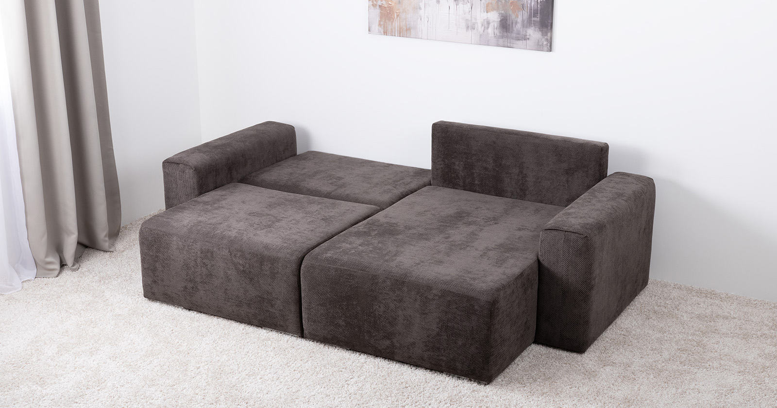 Диван-кровать угловой Оксфорд 711 композиция 1, шенилл Muza 06 темно-коричневый, модульная система, сборка на любую сторону