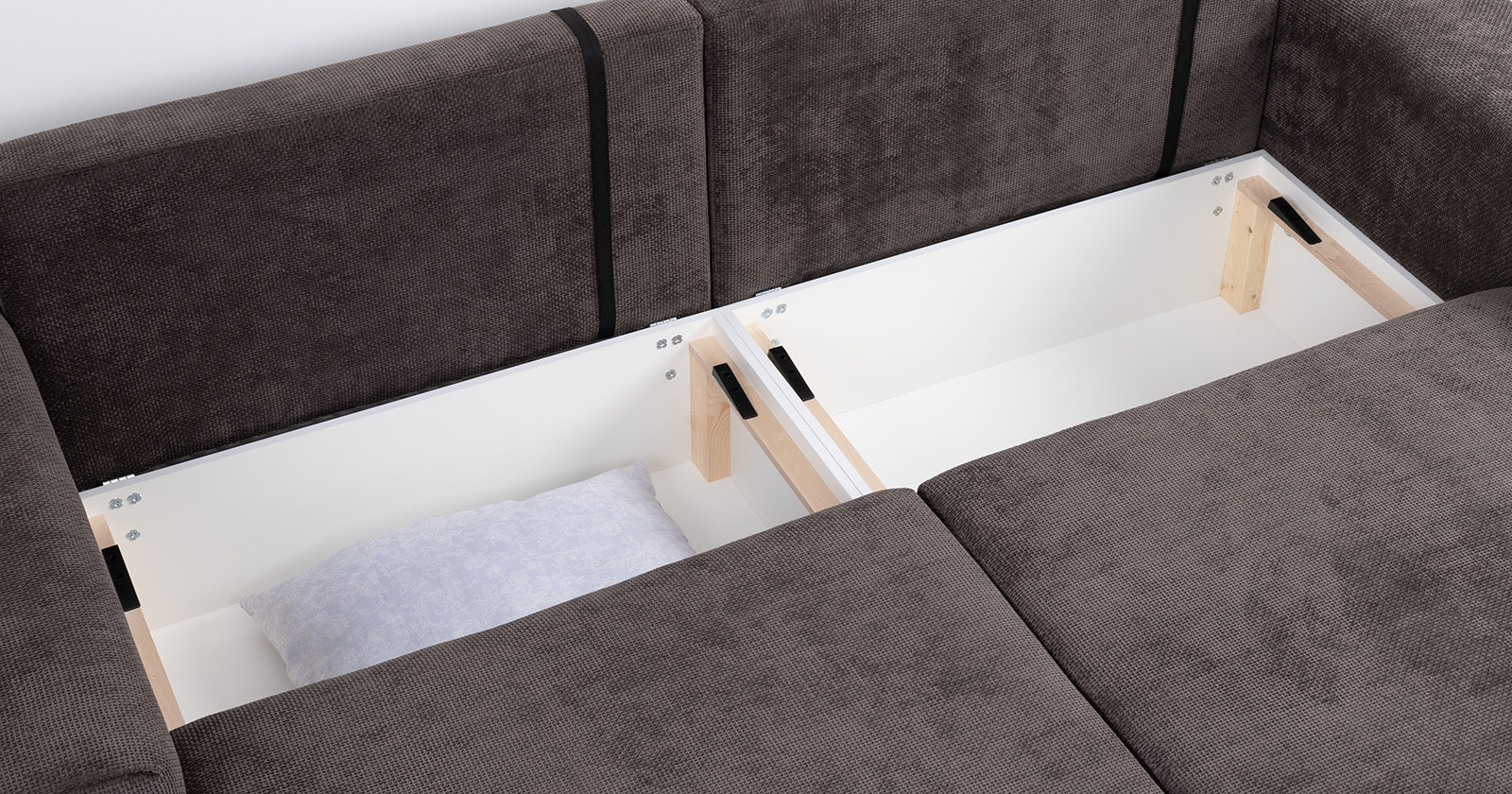 «Компоновка 1» арт. 711 состоит из: оттоманки арт. ТО 711, дивана арт. ТД 711, широкого подлокотника арт. ТБ 711, широкого подлокотника с ящиком арт. ТБ 711, двух приспинных подушек арт. 711 и двух декоративных подушек арт. 711.