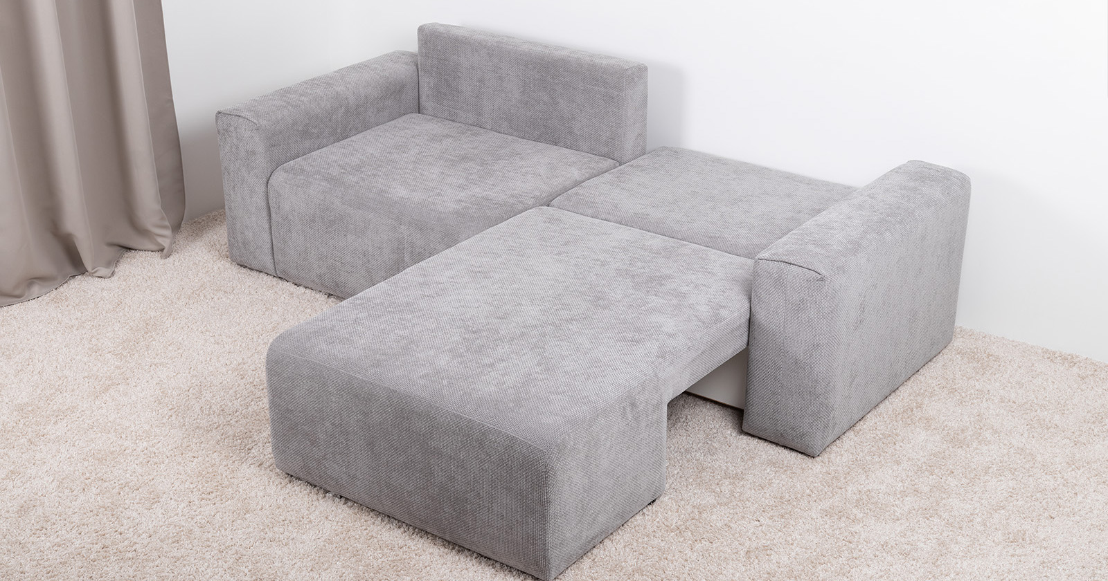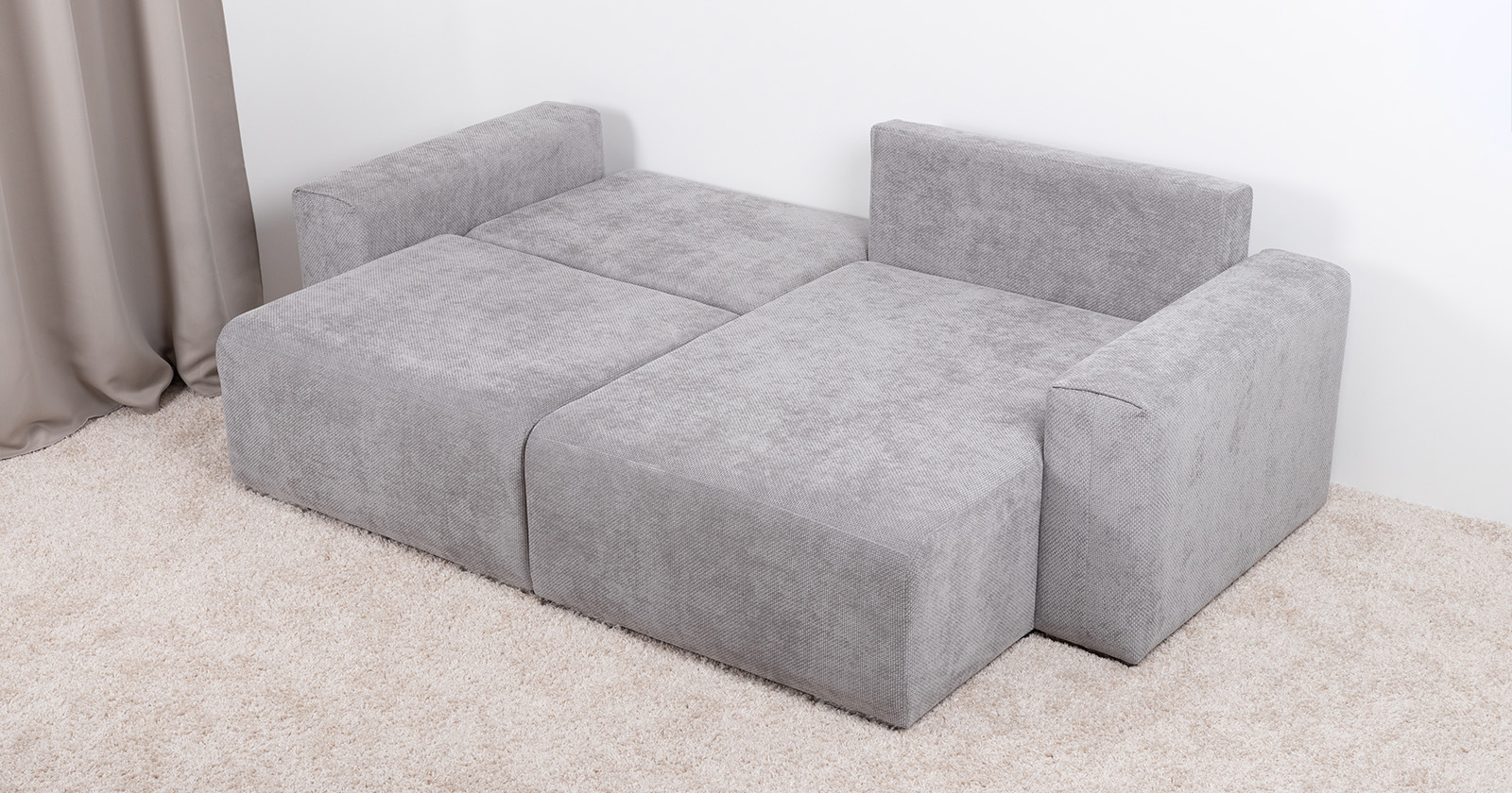 Диван-кровать угловой Тэдди 1506 композиция 2, букле Pique 011 серый, модульная система, сборка на любую сторону
