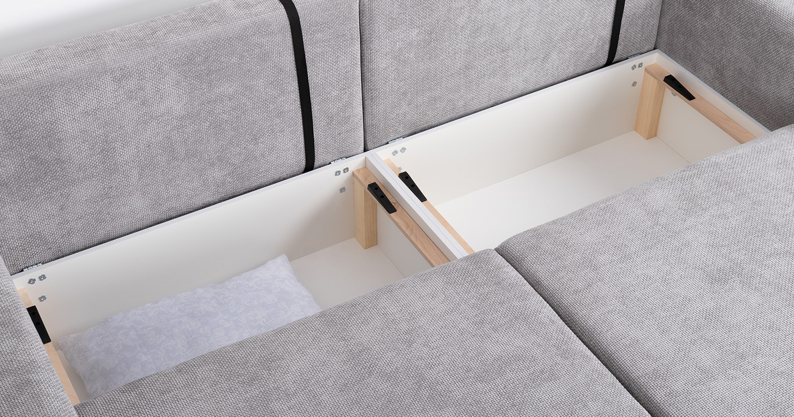 «Компоновка 1» арт. 712 состоит из: оттоманки арт. ТО 712, дивана арт. ТД 712, широкого подлокотника арт. ТБ 712, широкого подлокотника с ящиком арт. ТБ 712, двух приспинных подушек арт. 712 и двух декоративных подушек арт. 712.