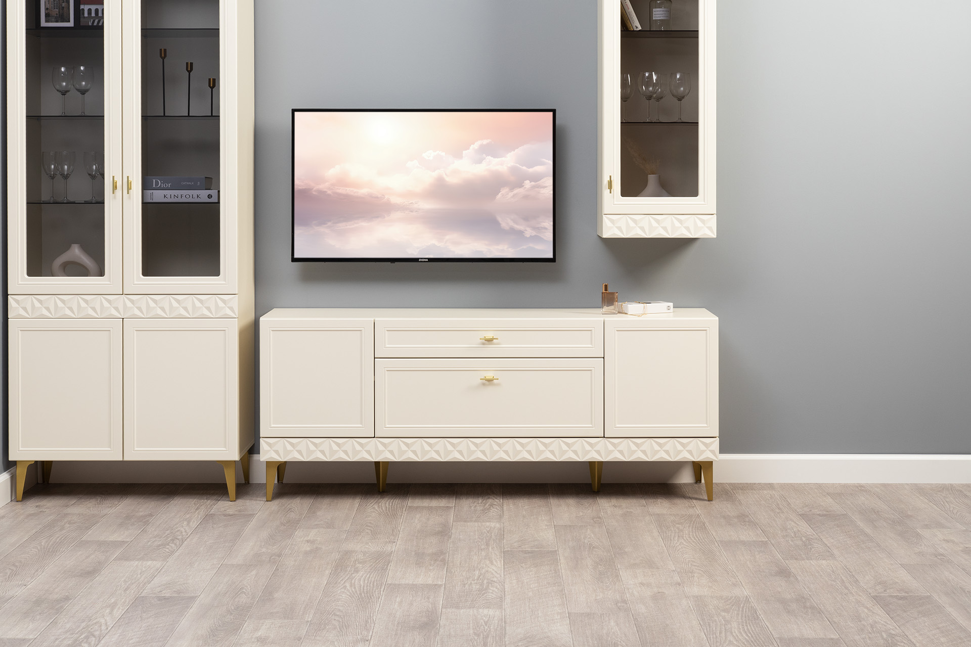 В коллекции представлены три типа витрин с тонированным закалённым стеклом, которые придают пространству лёгкость и свет. «Марион» — идеальное сочетание традиций и актуального дизайна в каждой детали.