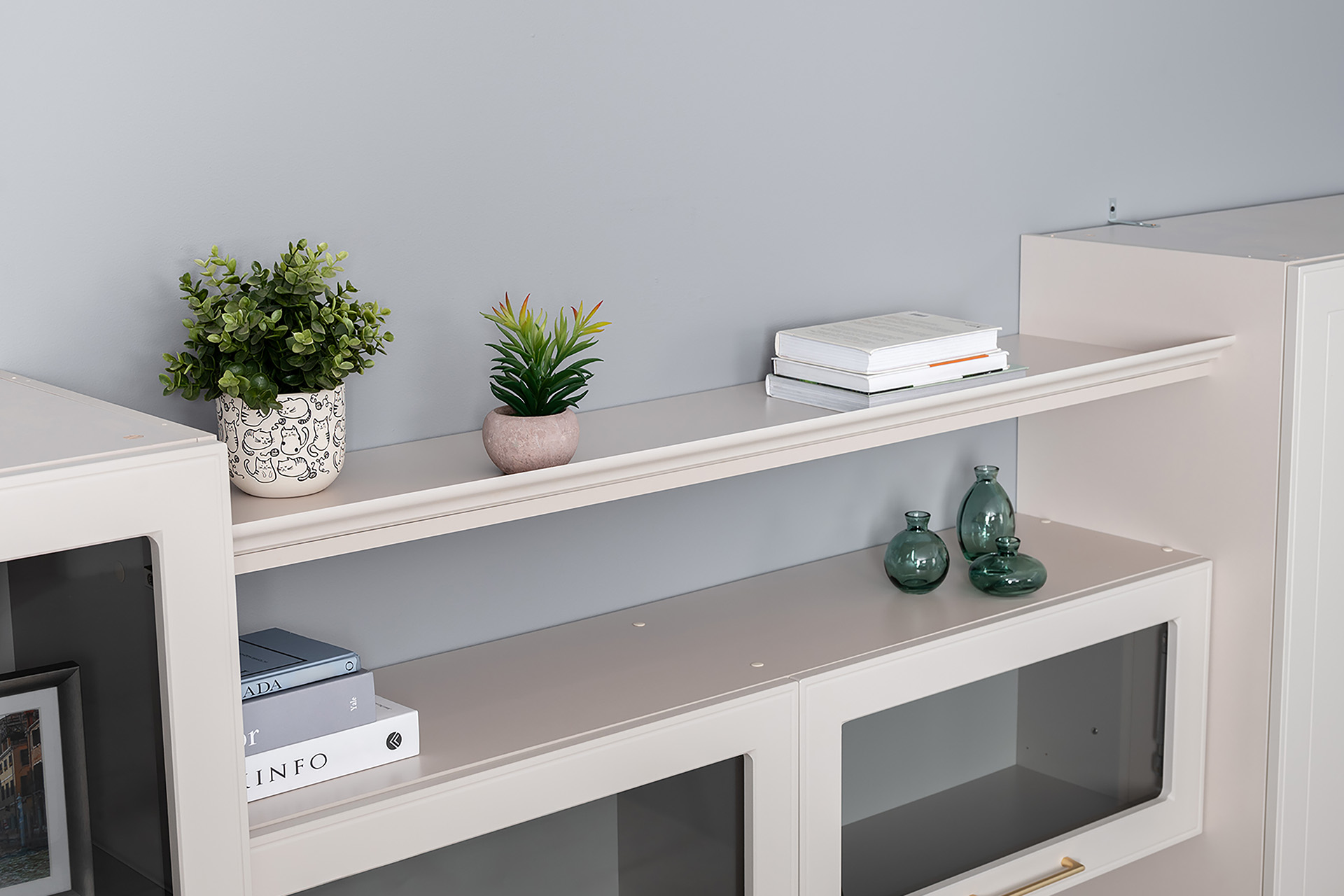 Гостиная Ричфорд композиция 1 с карнизами, кашемир 5981 BS, моно керамика D166-2 ПВХ, белый PE шагрень (собирается на любую сторону)