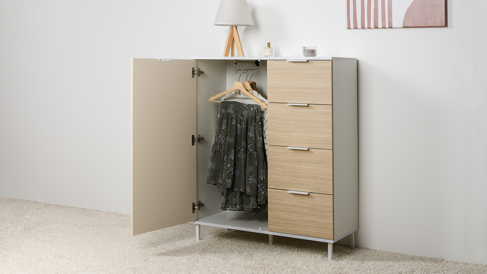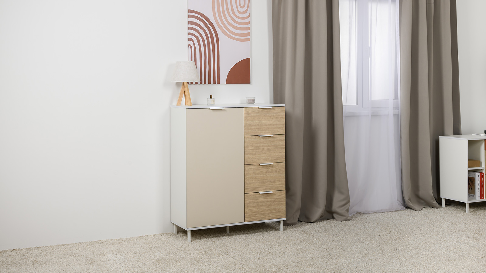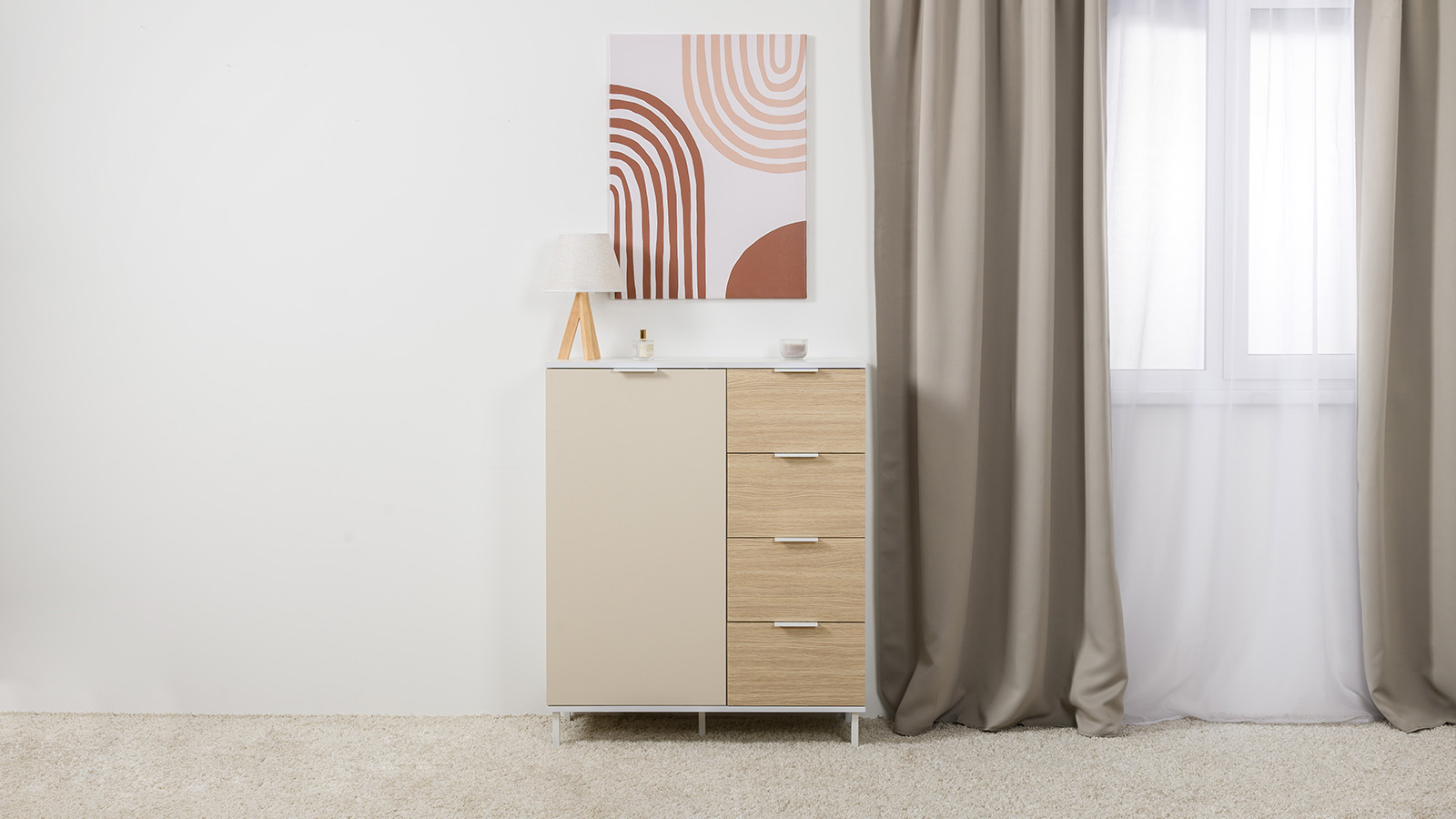 Комод Лакки бук песочный, дуб тортуга ПВХ, белый глянец ПВХ