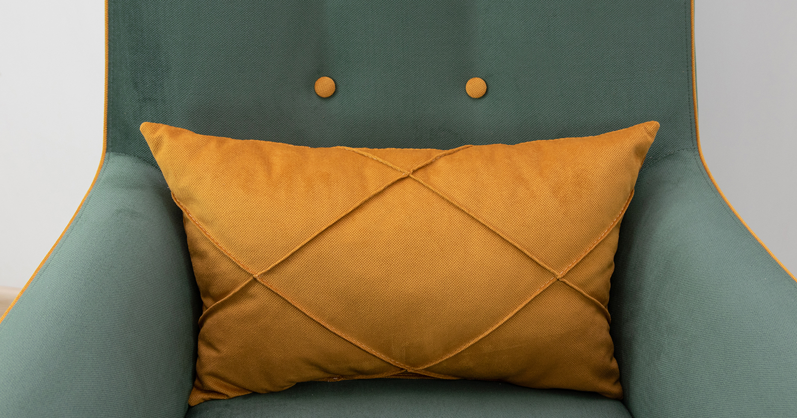 Декоративный кант на кресле, защипы на декоративной подушке, пуговицы на спинке