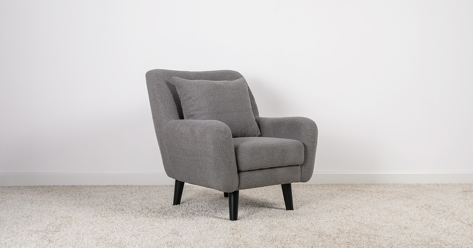 Ткань букле делает кресло особенно уютным и мягким. Приспинная подушка в цвете кресла