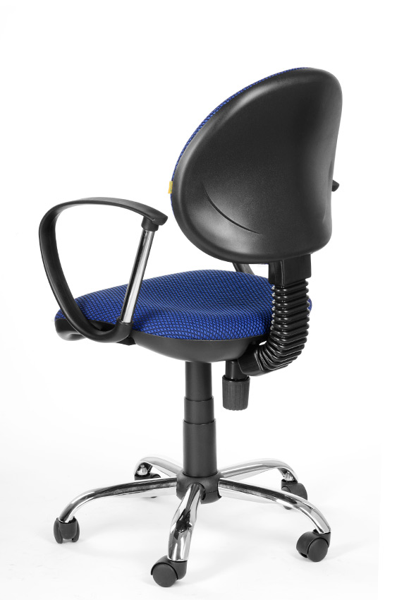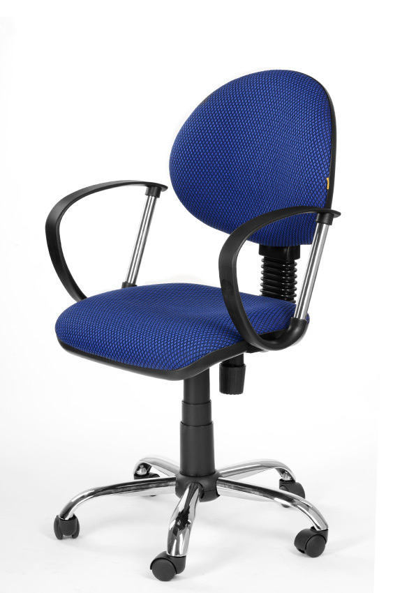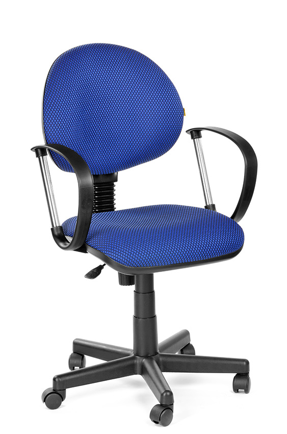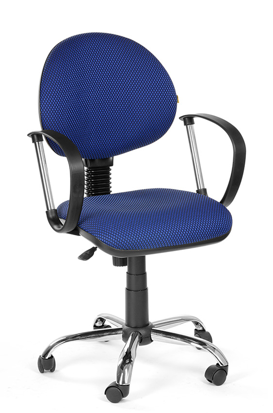 На фото кресло с подлокотником Фактор в ткани JP - 15/3 (синий) на пластиковой крестовине.