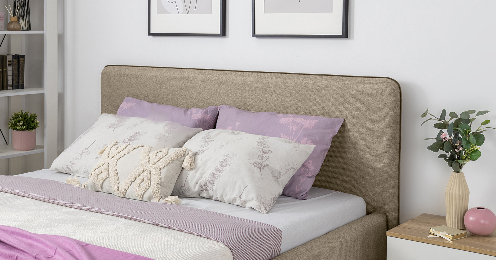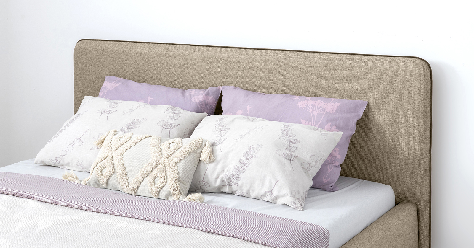 Cкругленный торец изголовья оформлен контрастным кантом.