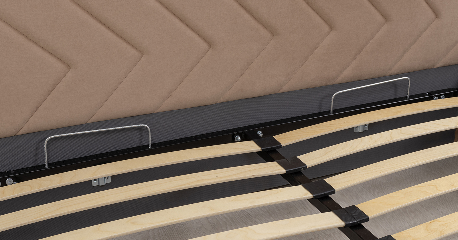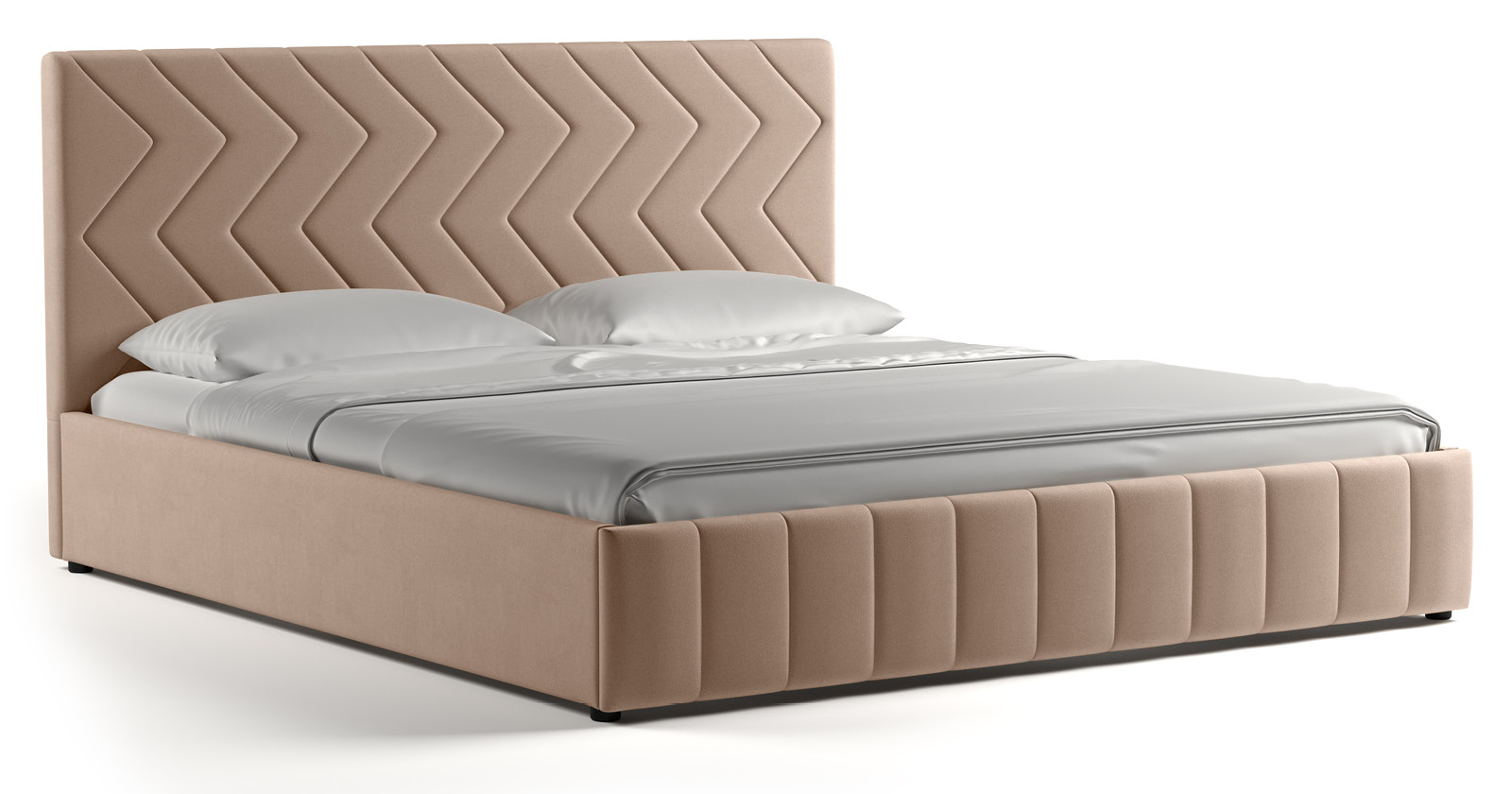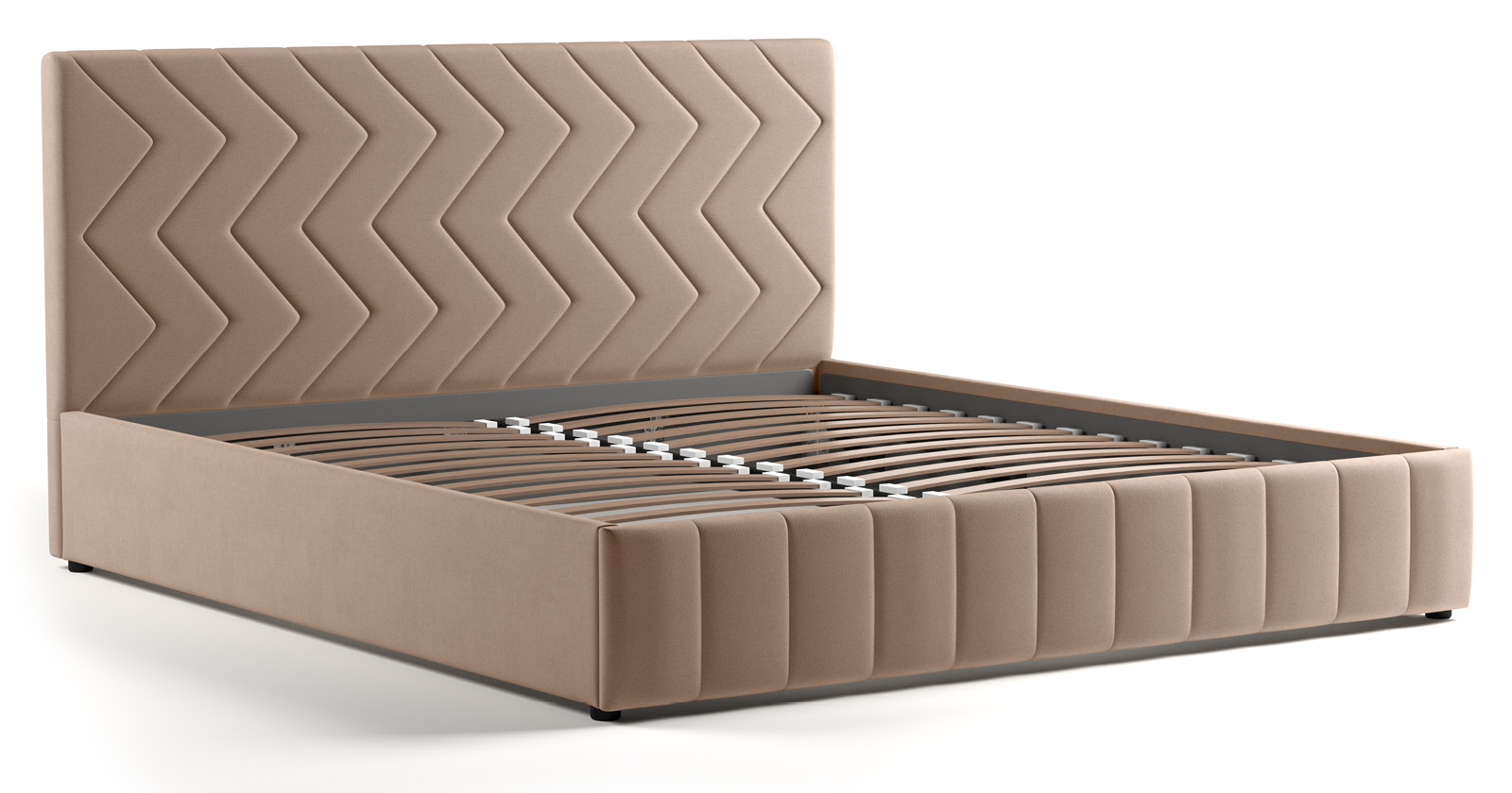 Кровать Милана 180 велюр бежевый кофейный с ортопедическим основанием и подъемным механизмом