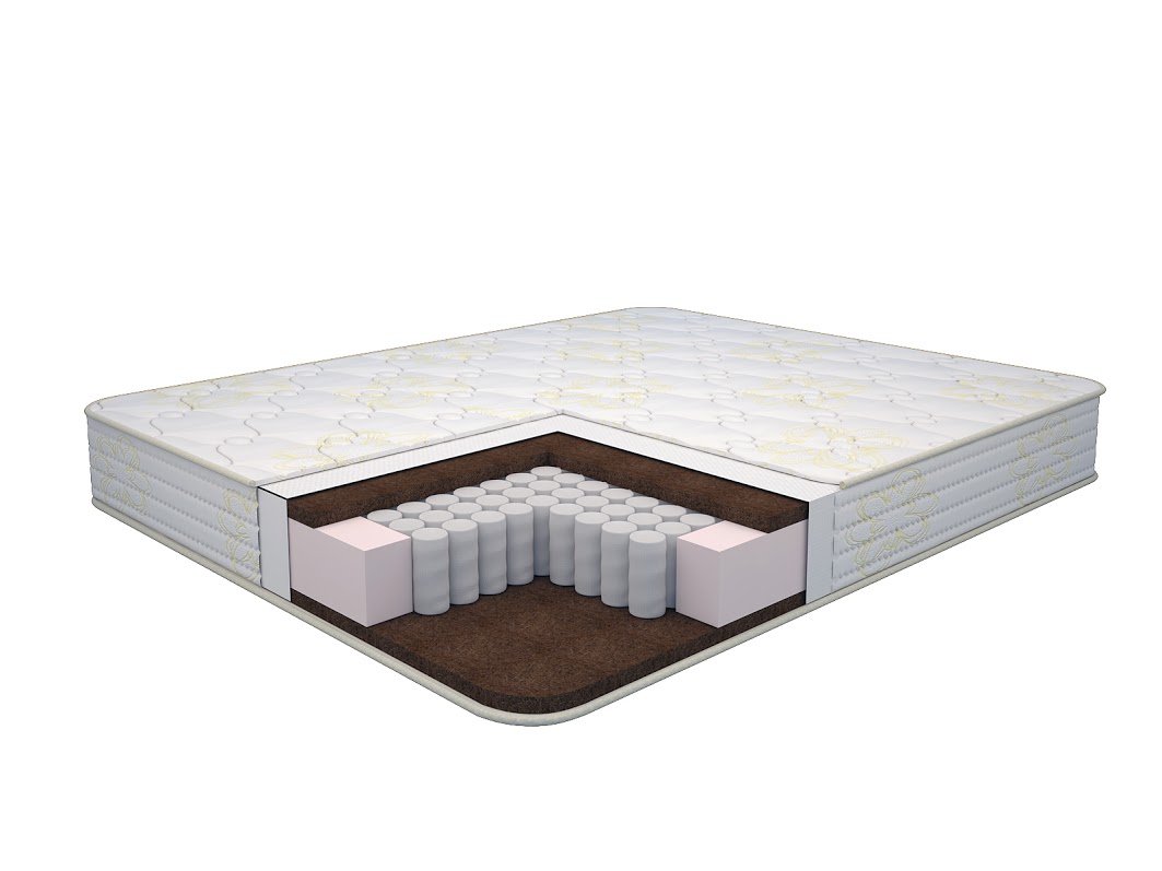 Матрас с использованием гипоаллергенного наполнителя - толстого слоя жесткого и прочного кокосового волокна, в сочетании с блоком независимых пружин будет надежной опорой для Вашего позвоночника. Этот материал не слеживается, не теряет форму и сохраняет свою упругость в течение многих лет.