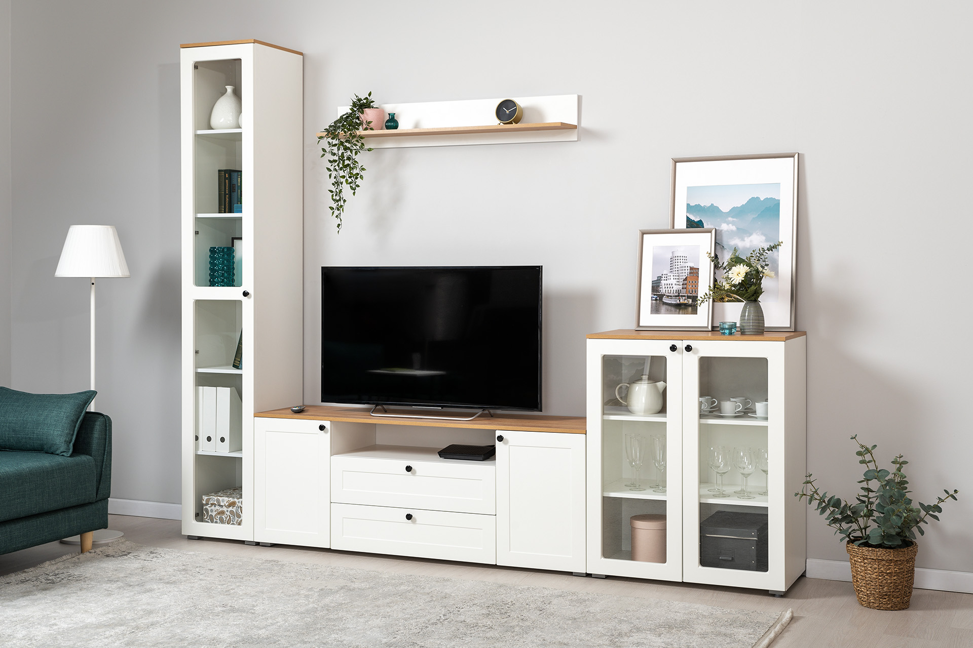 Шкаф в гостиную Остин 16.307 белый PE шагрень, дуб золотой CRAFT, белая шагрень 4101 ПВХ