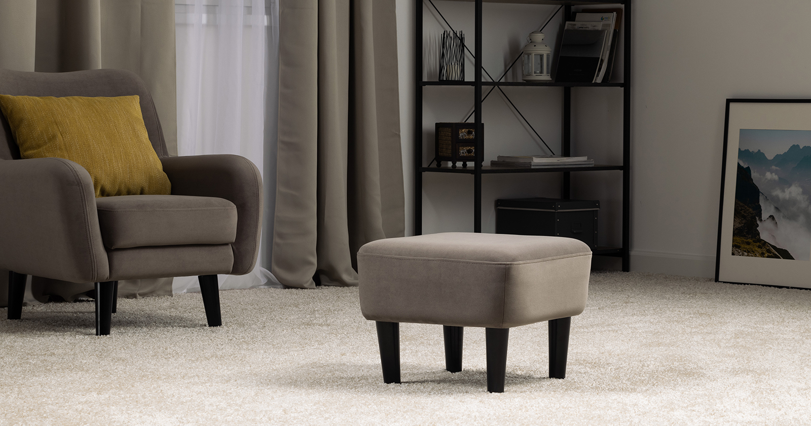 Мягкие линии и визуальная легкость — отличительные черты пуфа Дакота. Гармонично дополнит диван и кресло из этой коллекции.