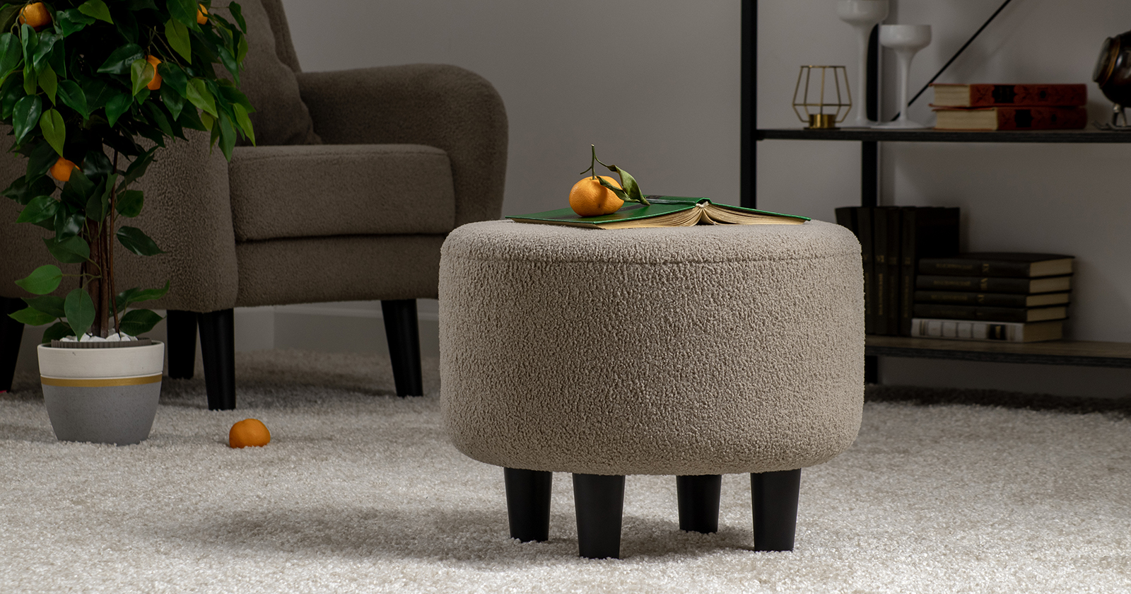 Пуф Шон выполнен в современном стиле. Пуф имеет мягкую, округлую форму. Может использоваться как дополнительное сиденье или подставка для ног. Универсальный предмет мебели, который можно использовать в прихожей, спальне, гостиной, детской и любом другом помещении. Ткань букле делает кресло особенно уютным и мягким.