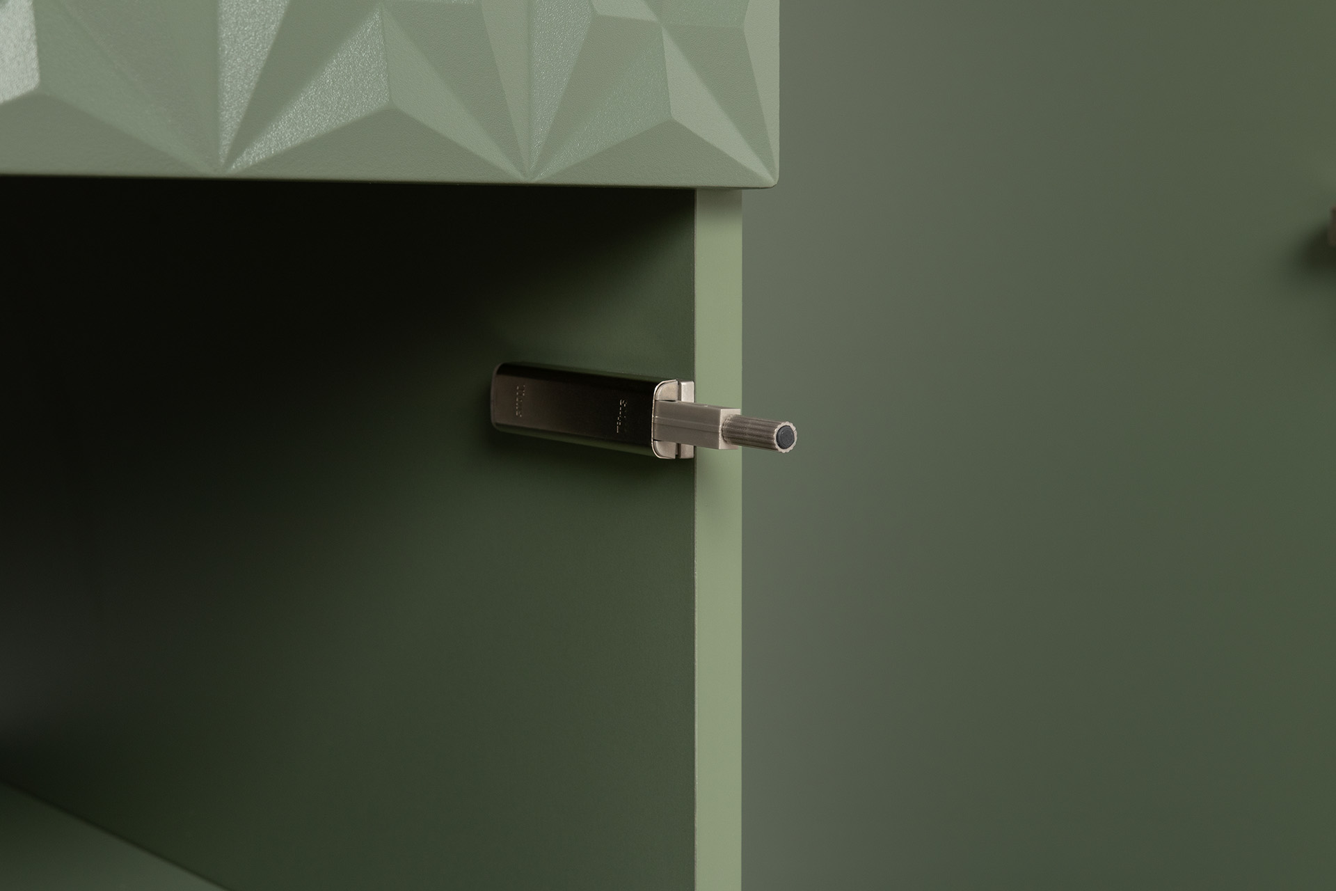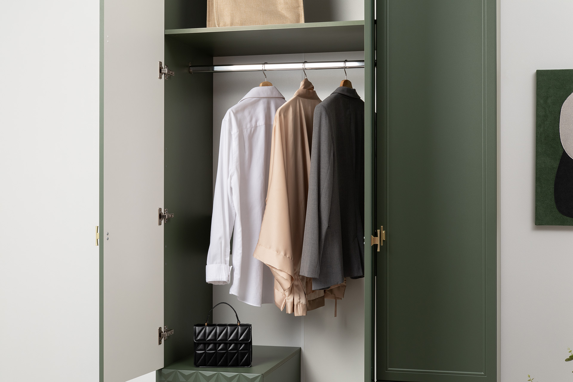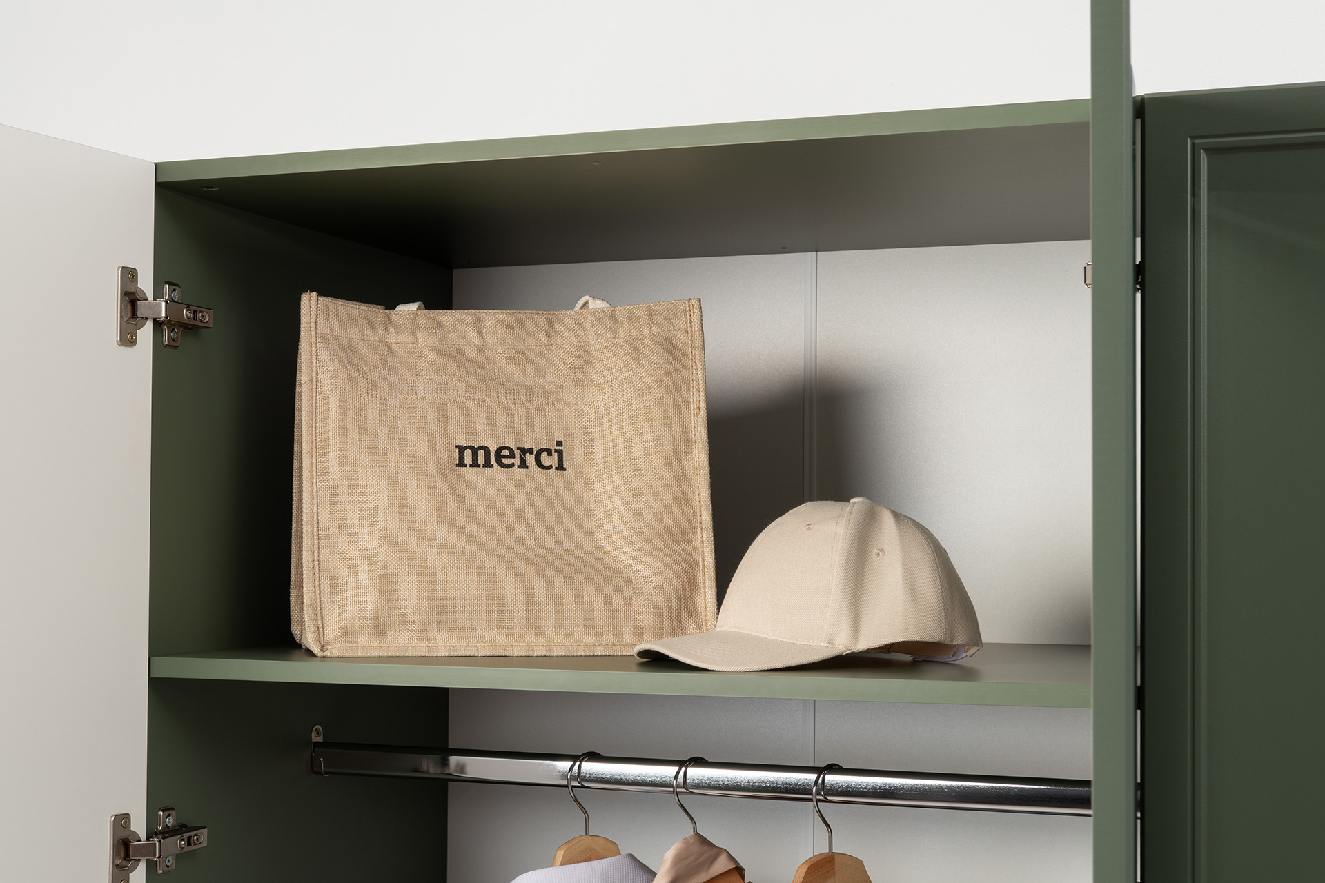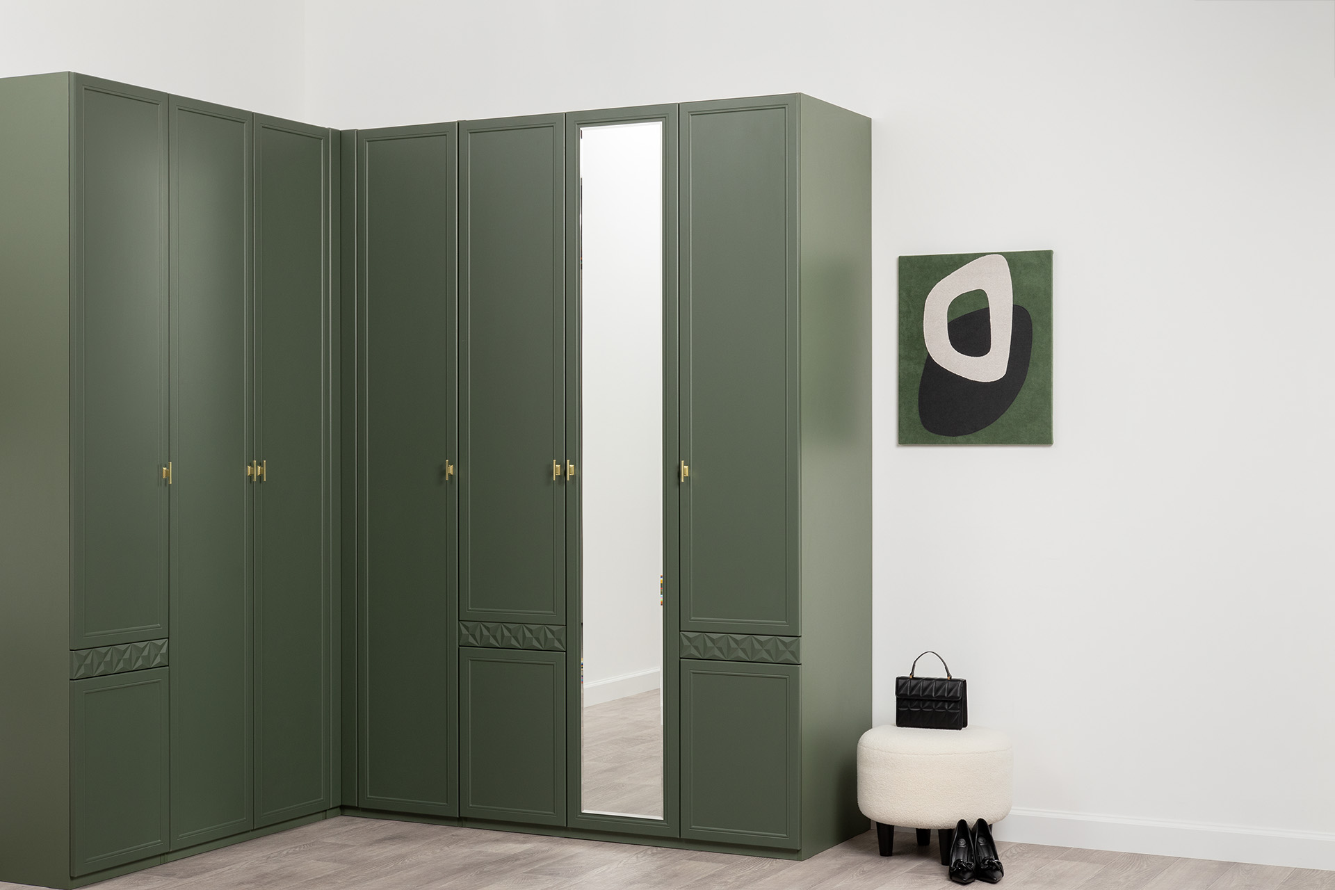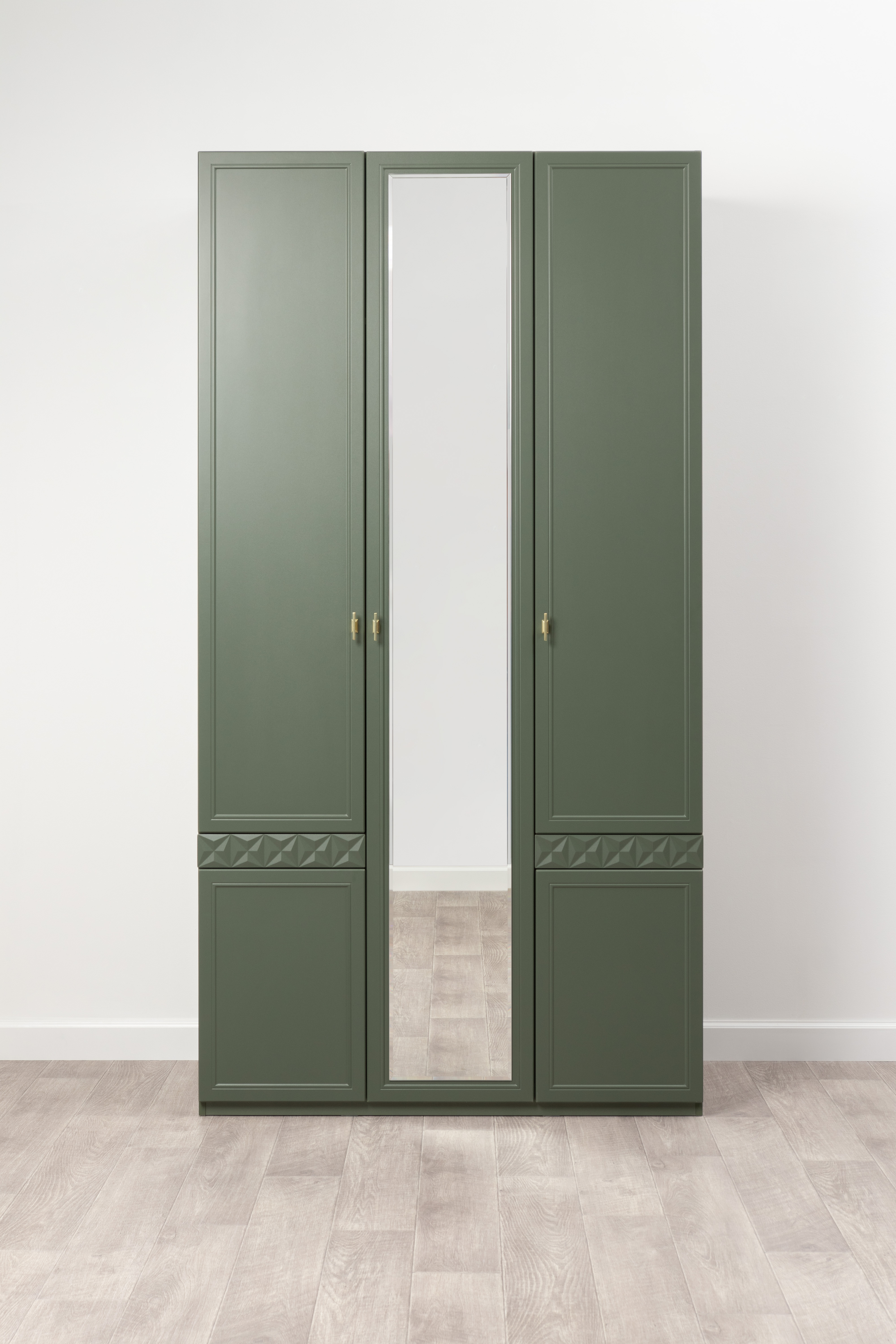 Шкаф для одежды Марион 16.340.03 дымчатый зеленый K521, олива шагрень AG 1050 ПВХ (собирается на любую сторону)
