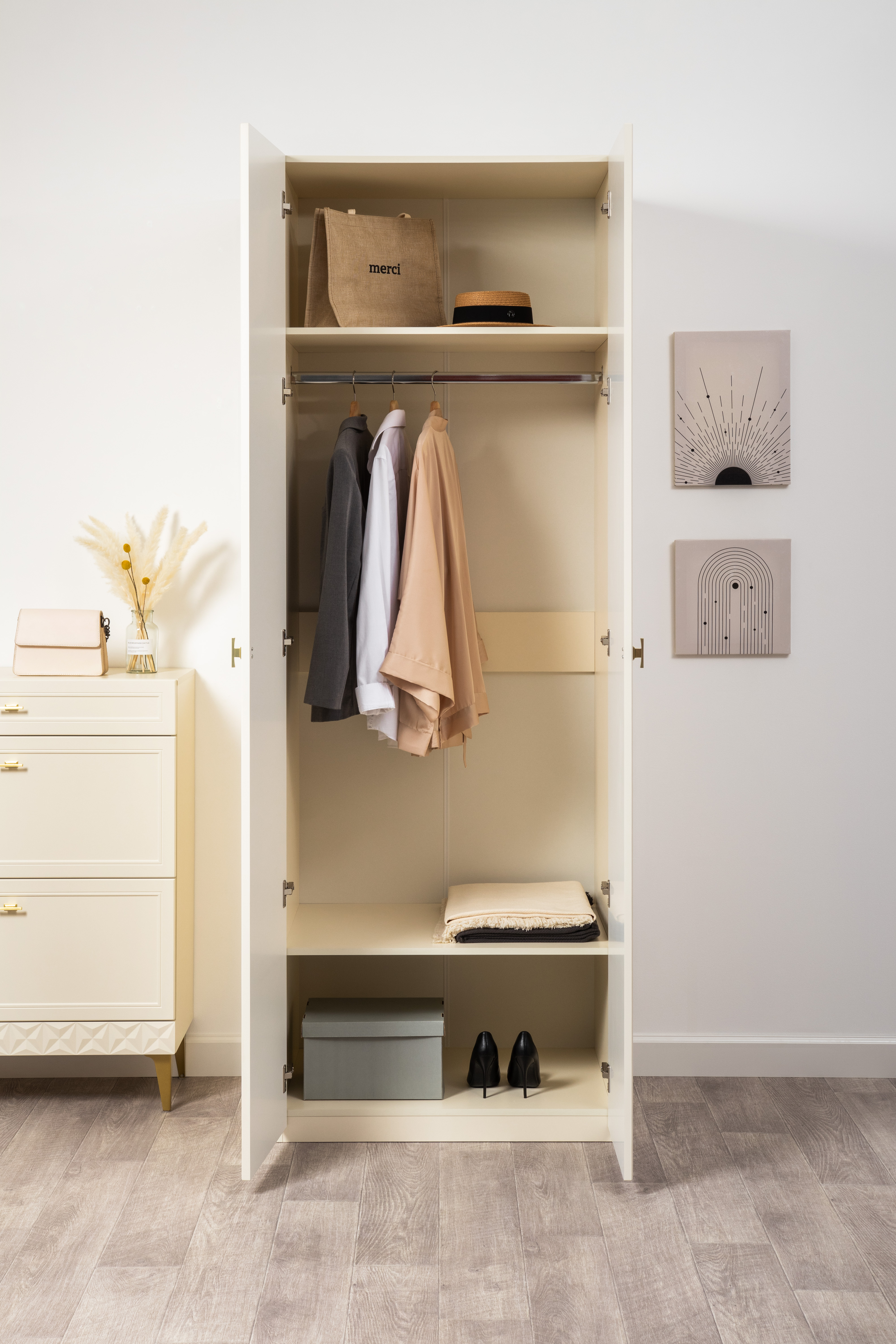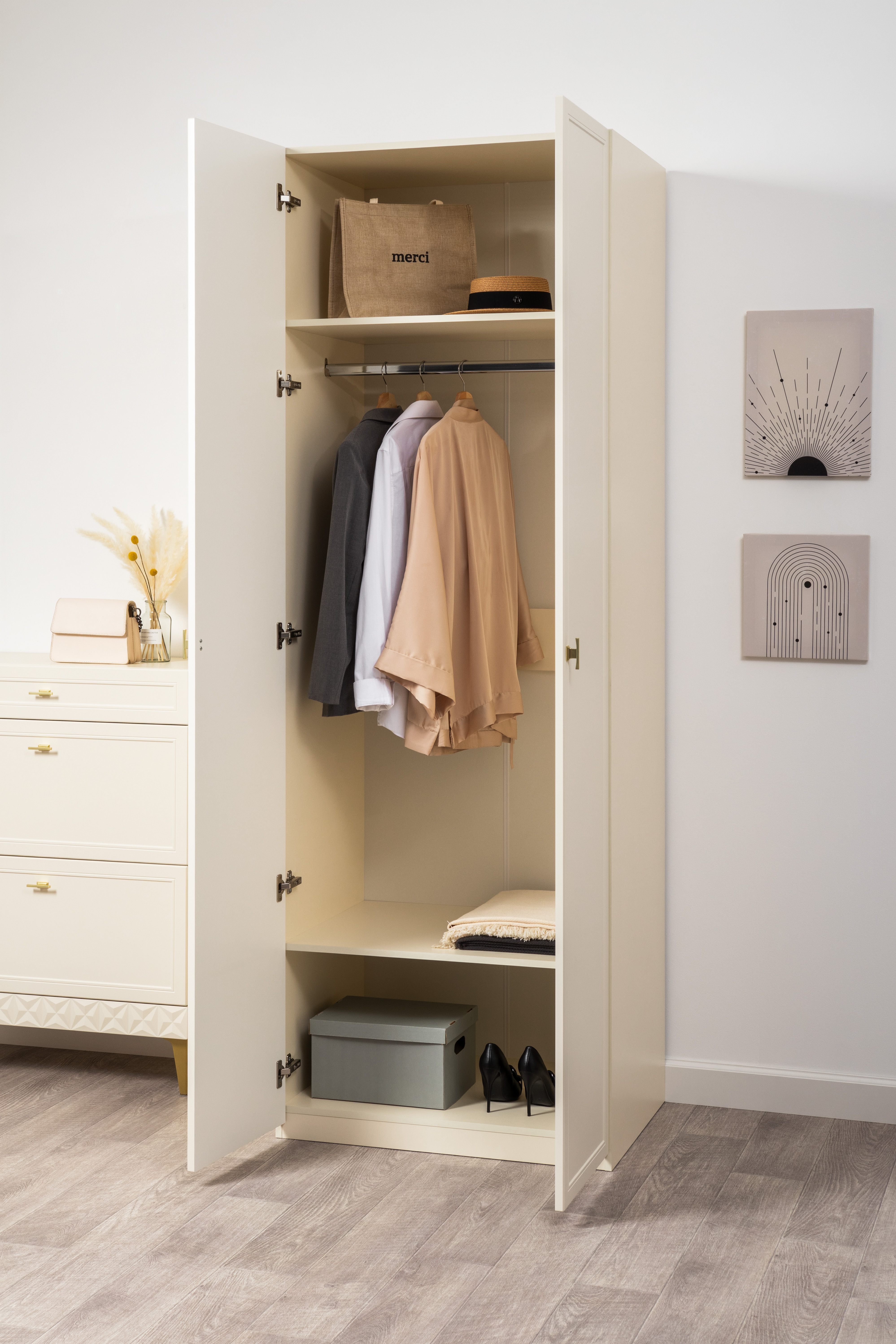 Шкаф двустворчатый Марион 16.340.02 слоновая кость С341 PE, слоновая кость 6898 ПВХ
