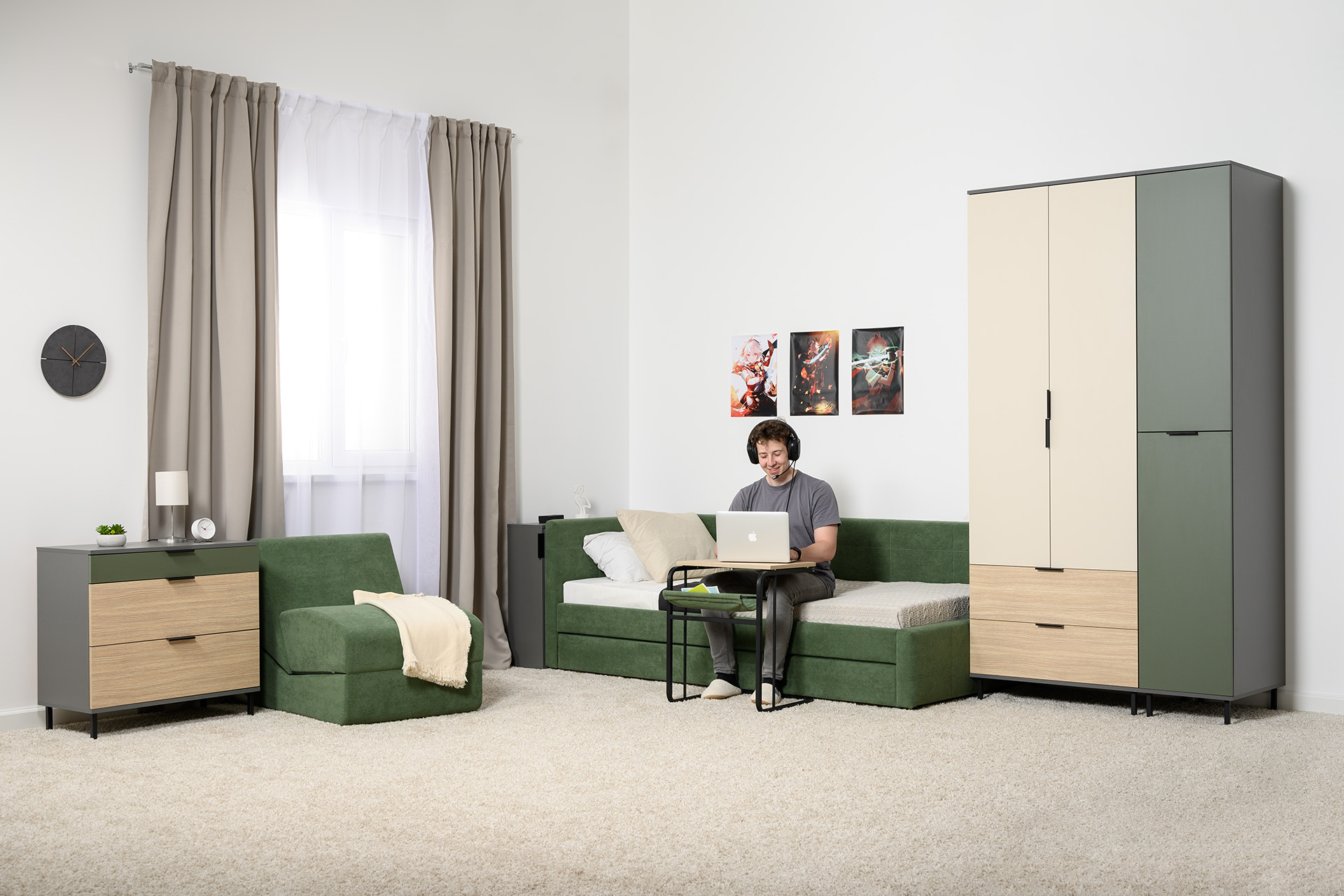 Кровать одинарная Марвэл 90 EPIC MOSS (зелёная) с ортопедическим основанием (универсальная сборка)