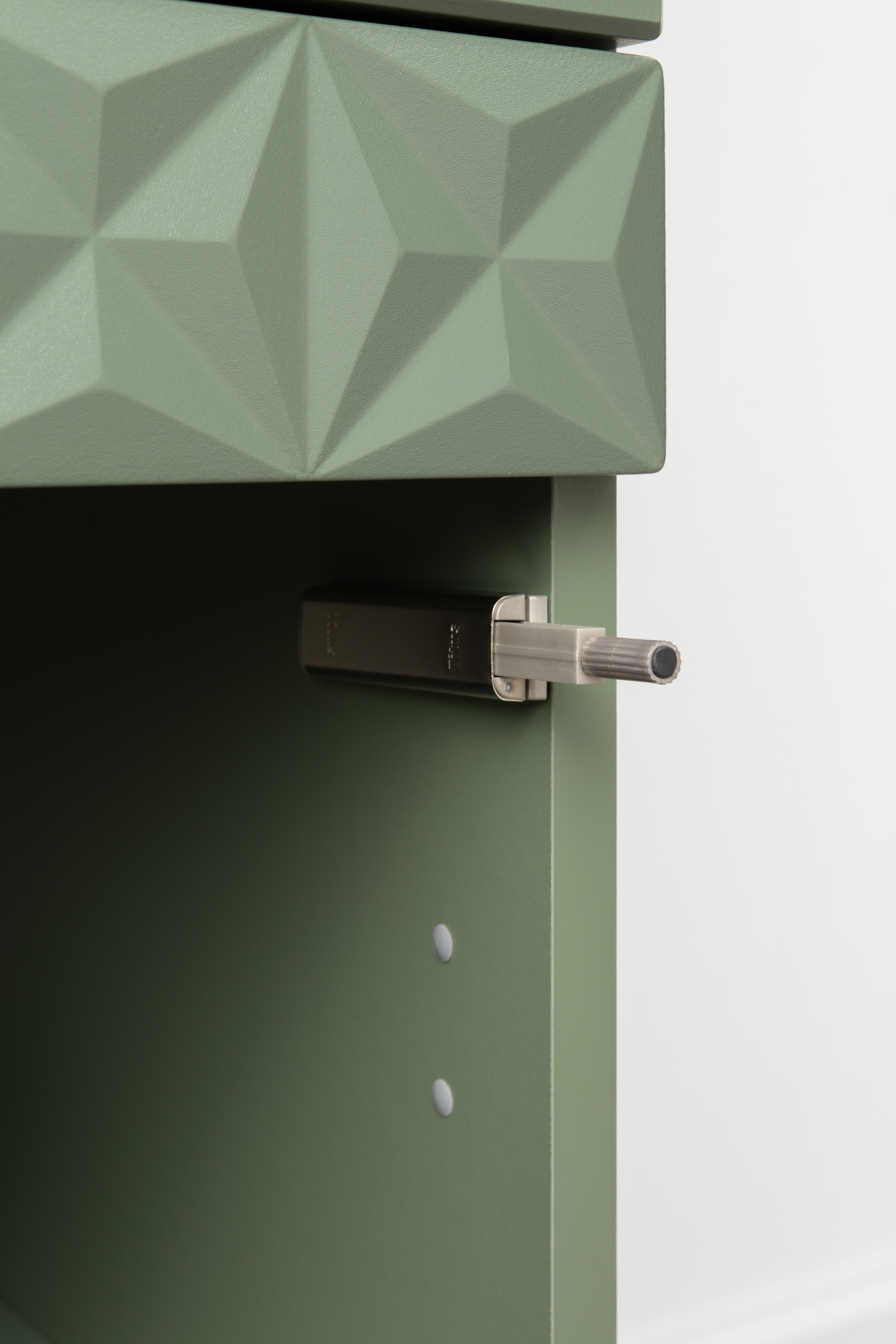 Изящные линии, глубокая фрезеровка фасадов из МДФ и благородные оттенки. Утончённая «Слоновая кость» и изысканная «Олива Шагрень» с глубоким зелёным тоном — создают атмосферу уюта, тепла и благородства. Металлические ручки и опоры золотого цвета придают мебели утончённый блеск, а петли и направляющие с доводчиками обеспечивают плавное и бесшумное закрытие фасадов.