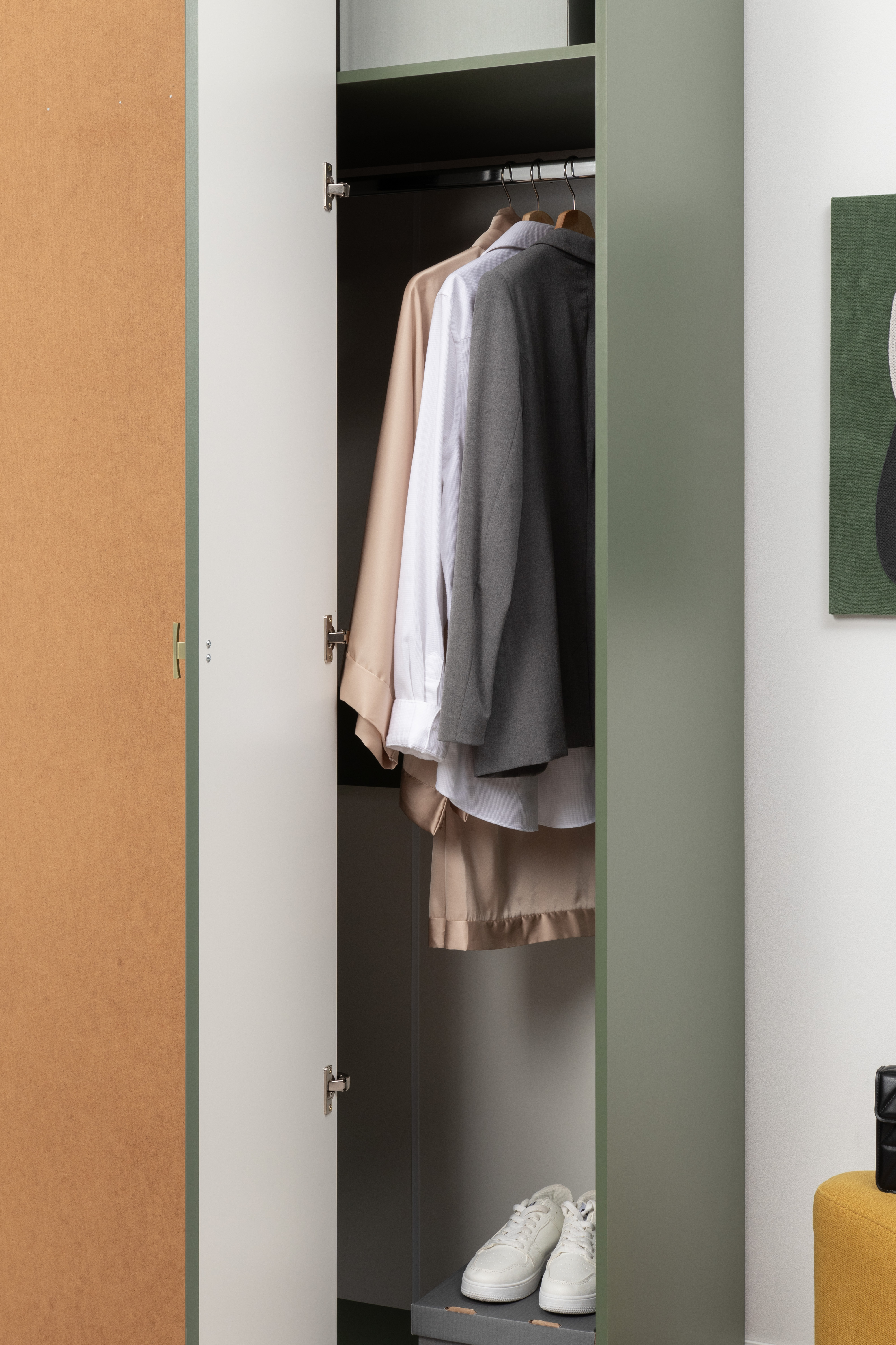 Шкаф угловой Марион 16.339 дымчатый зеленый K521, олива шагрень AG 1050 ПВХ (собирается на любую сторону)