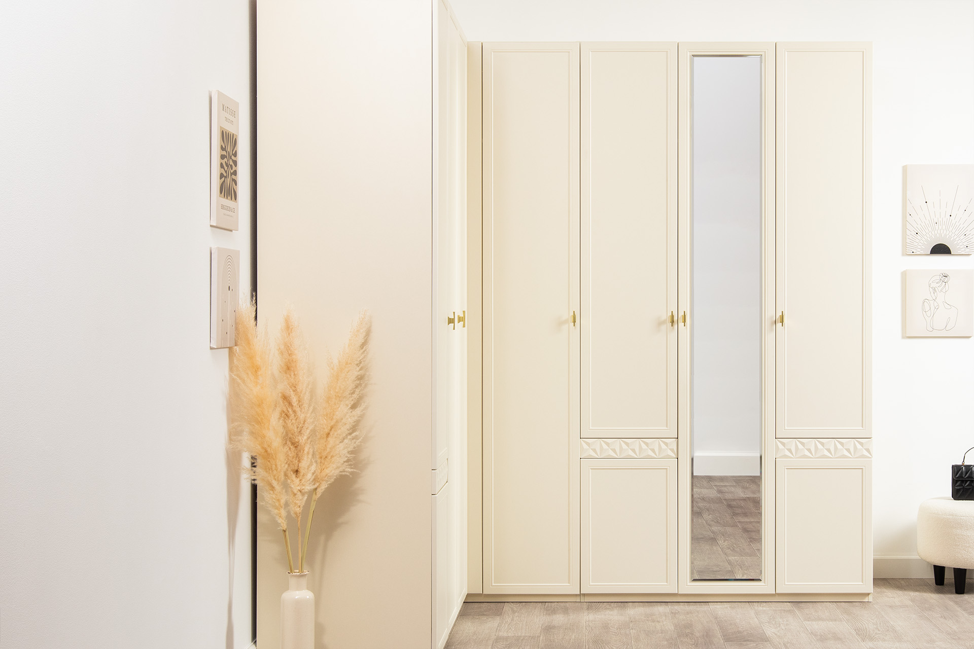 Шкаф угловой Марион 16.339 слоновая кость С341 PE, слоновая кость 6898 ПВХ (собирается на любую сторону)