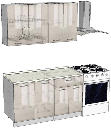 Модули в данном комплекте 80 и 60 см, посудосушитель и мойку можете выбрать в разделе Комплектующие кухни.