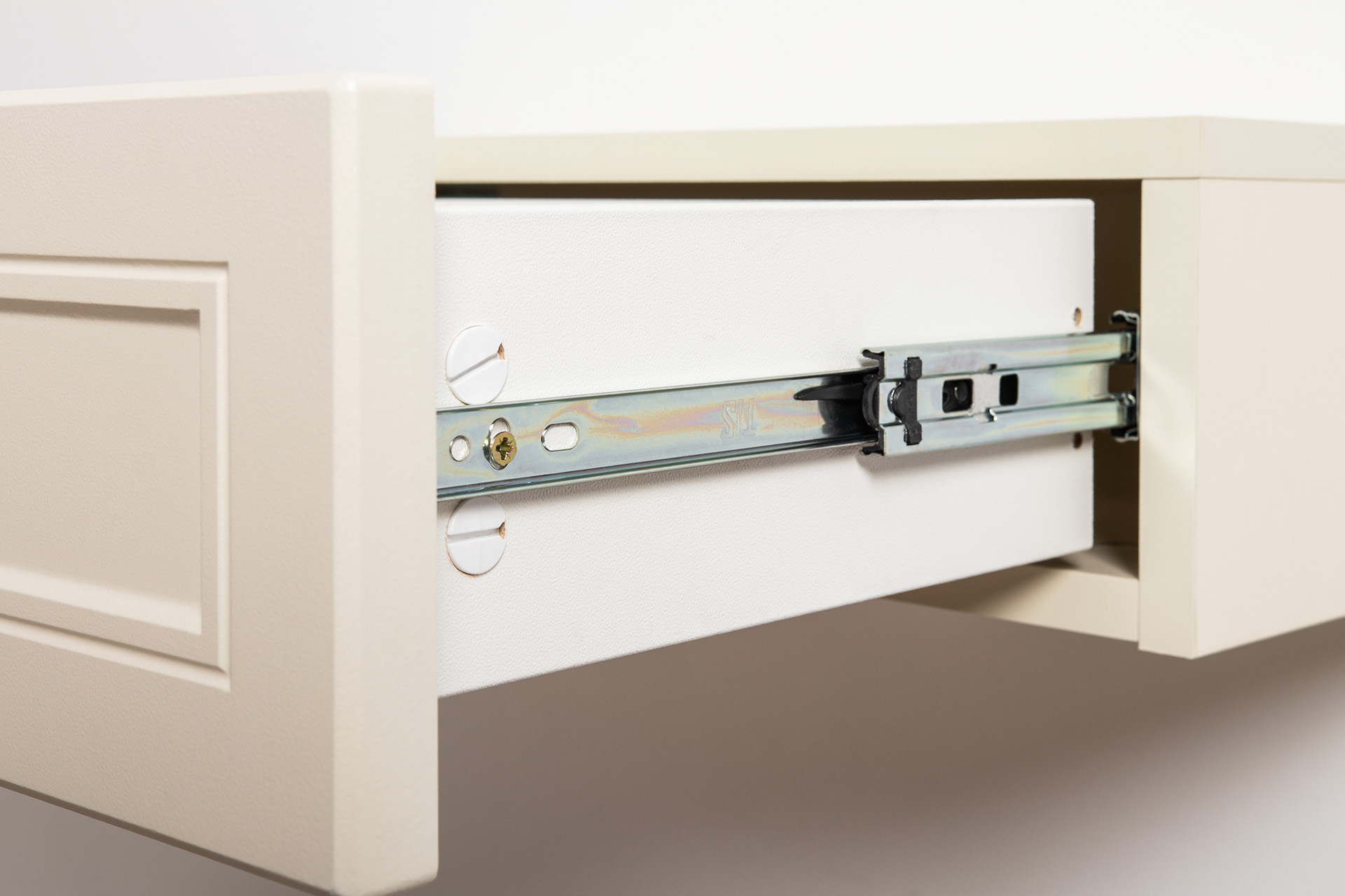 Изящные линии, глубокая фрезеровка фасадов из МДФ и благородные оттенки. Утончённая «Слоновая кость» и изысканная «Олива Шагрень» с глубоким зелёным тоном — создают атмосферу уюта, тепла и благородства. Металлические ручки и опоры золотого цвета придают мебели утончённый блеск, а петли и направляющие с доводчиками обеспечивают плавное и бесшумное закрытие фасадов.