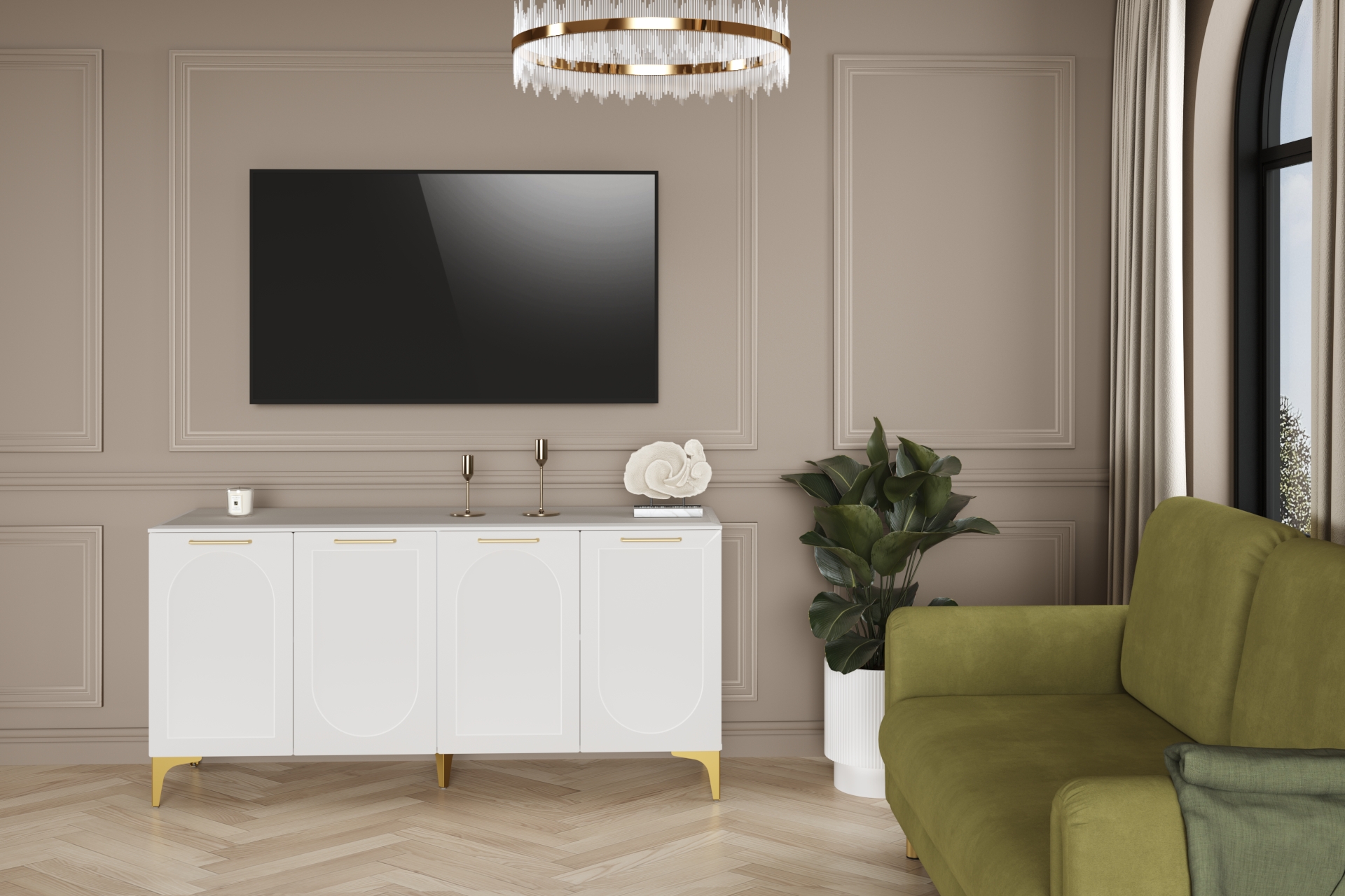 Тумба под ТВ в гостиную Альба дуб золотой CRAFT, белый премиум, без подсветки