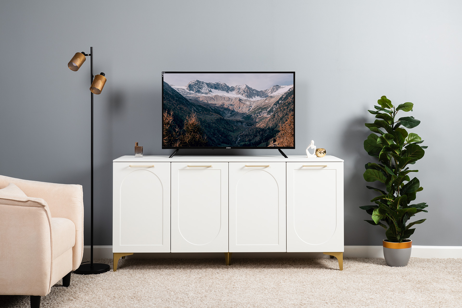 Тумба под ТВ Монтесито 16.66 Белый PE шагрень, белая шагрень 4101 ПВХ