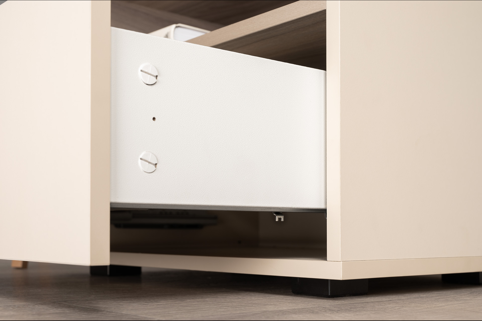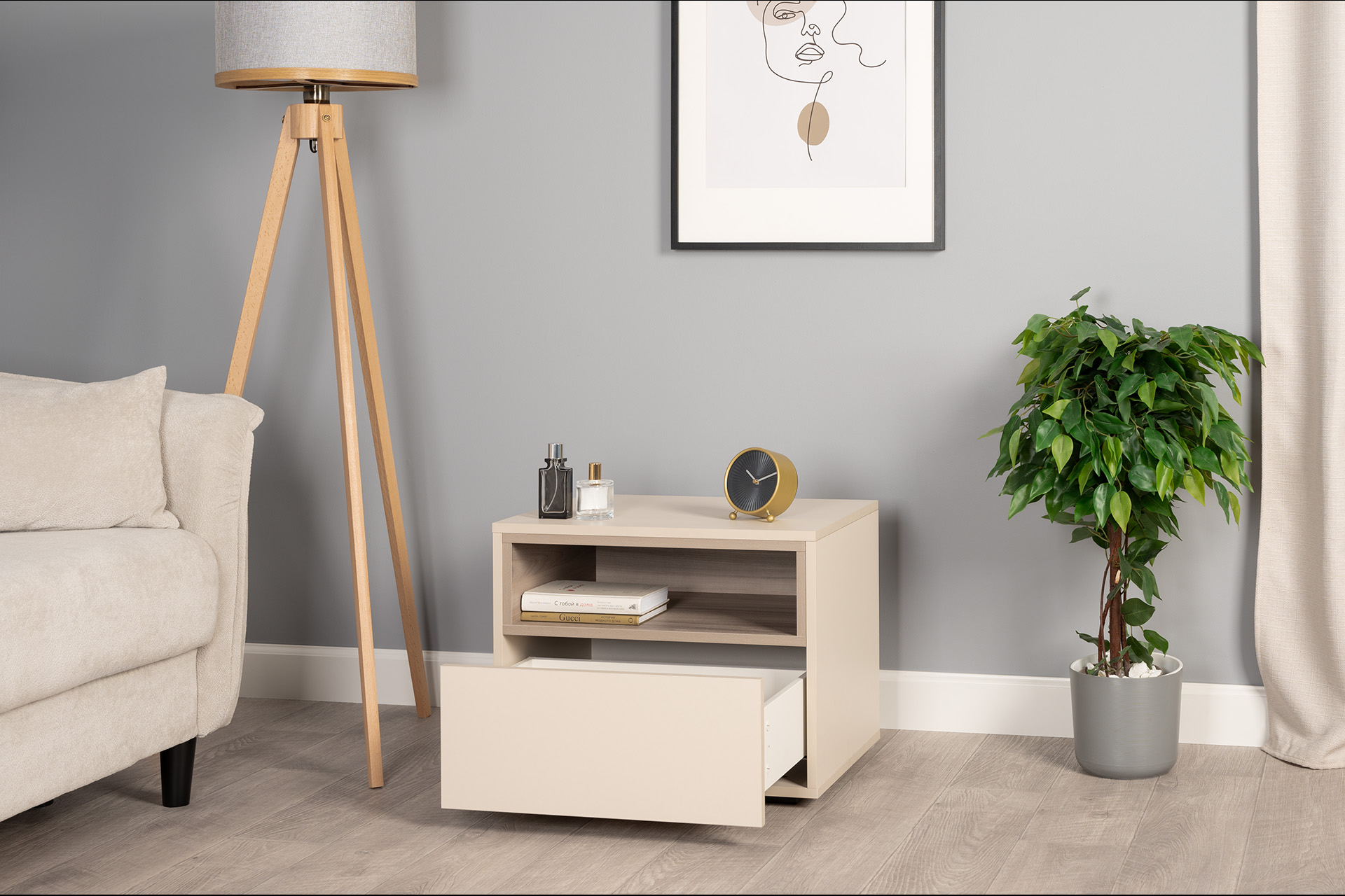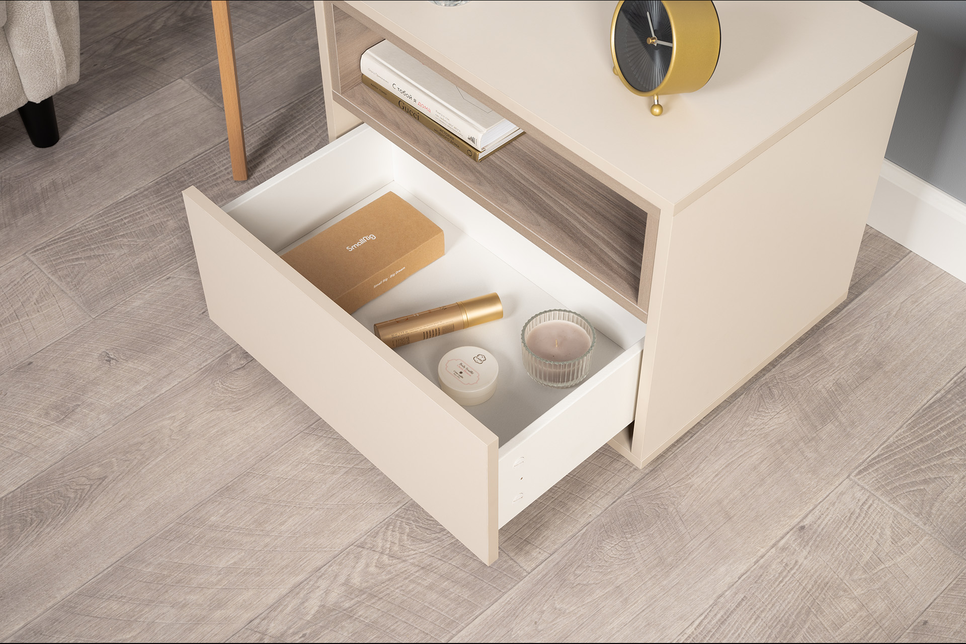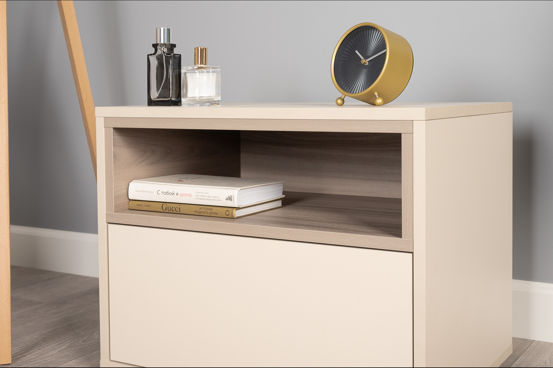 Тумба прикроватная Лакки бук песочный, дуб тортуга ПВХ, белый глянец ПВХ